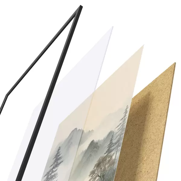 L’affiche encadrée est composée d’un cadre, d’un plexiglas, d’une image imprimée et d’un support en aggloméré. Elle est prête à être accrochée au mur grâce aux fixations situées à l’arrière.