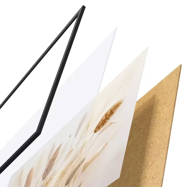 L’affiche encadrée est composée d’un cadre, d’un plexiglas, d’une image imprimée et d’un support en aggloméré. Elle est prête à être accrochée au mur grâce aux fixations situées à l’arrière.