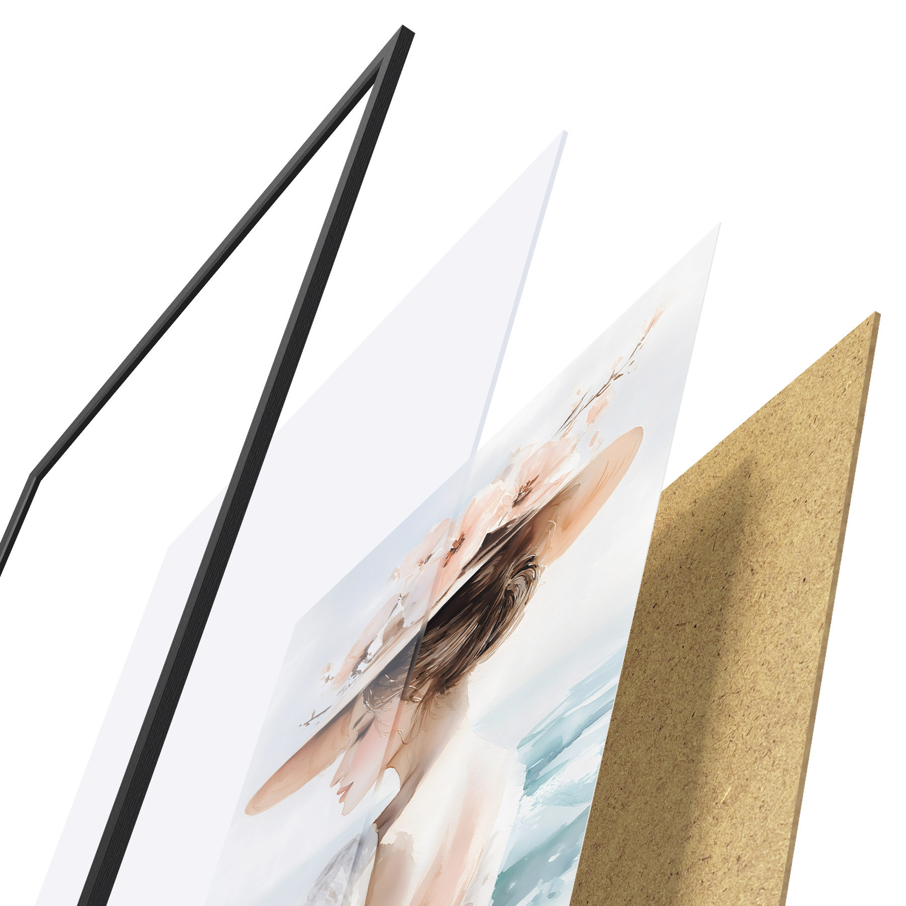 L’affiche encadrée est composée d’un cadre, d’un plexiglas, d’une image imprimée et d’un support en aggloméré. Elle est prête à être accrochée au mur grâce aux fixations situées à l’arrière.