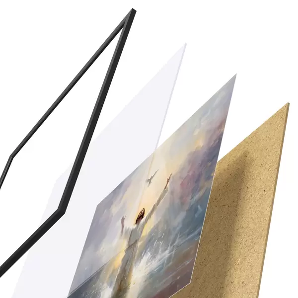 L’affiche encadrée est composée d’un cadre, d’un plexiglas, d’une image imprimée et d’un support en aggloméré. Elle est prête à être accrochée au mur grâce aux fixations situées à l’arrière.