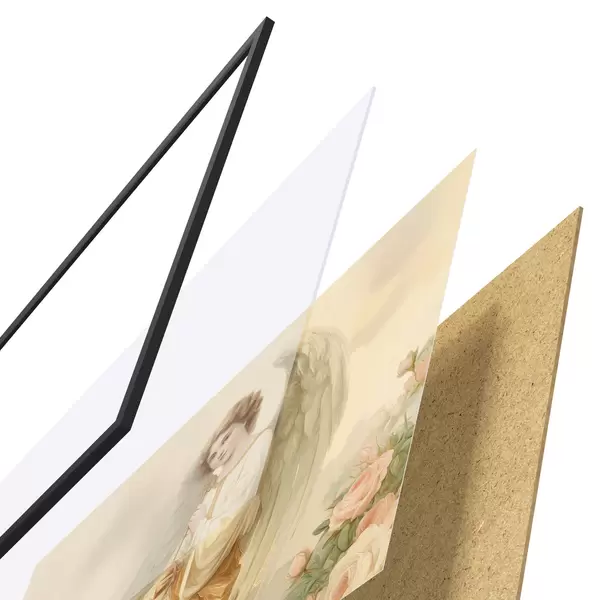 L’affiche encadrée est composée d’un cadre, d’un plexiglas, d’une image imprimée et d’un support en aggloméré. Elle est prête à être accrochée au mur grâce aux fixations situées à l’arrière.