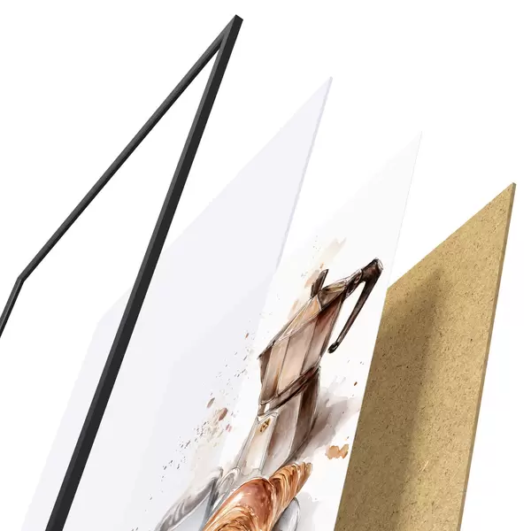 L’affiche encadrée est composée d’un cadre, d’un plexiglas, d’une image imprimée et d’un support en aggloméré. Elle est prête à être accrochée au mur grâce aux fixations situées à l’arrière.