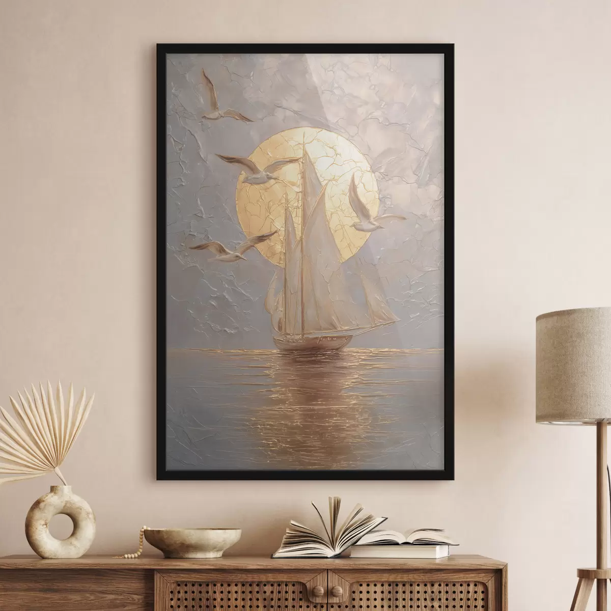 L’affiche encadrée est composée d’un cadre, d’un plexiglas, d’une image imprimée et d’un support en aggloméré. Elle est prête à être accrochée au mur grâce aux fixations situées à l’arrière.