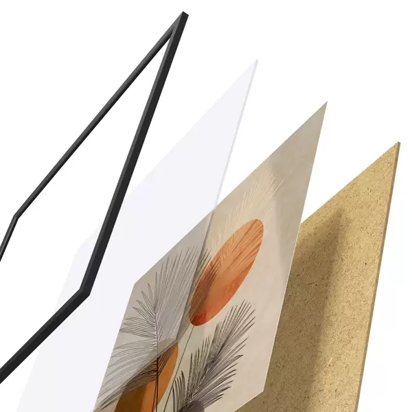L’affiche encadrée est composée d’un cadre, d’un plexiglas, d’une image imprimée et d’un support en aggloméré. Elle est prête à être accrochée au mur grâce aux fixations situées à l’arrière.