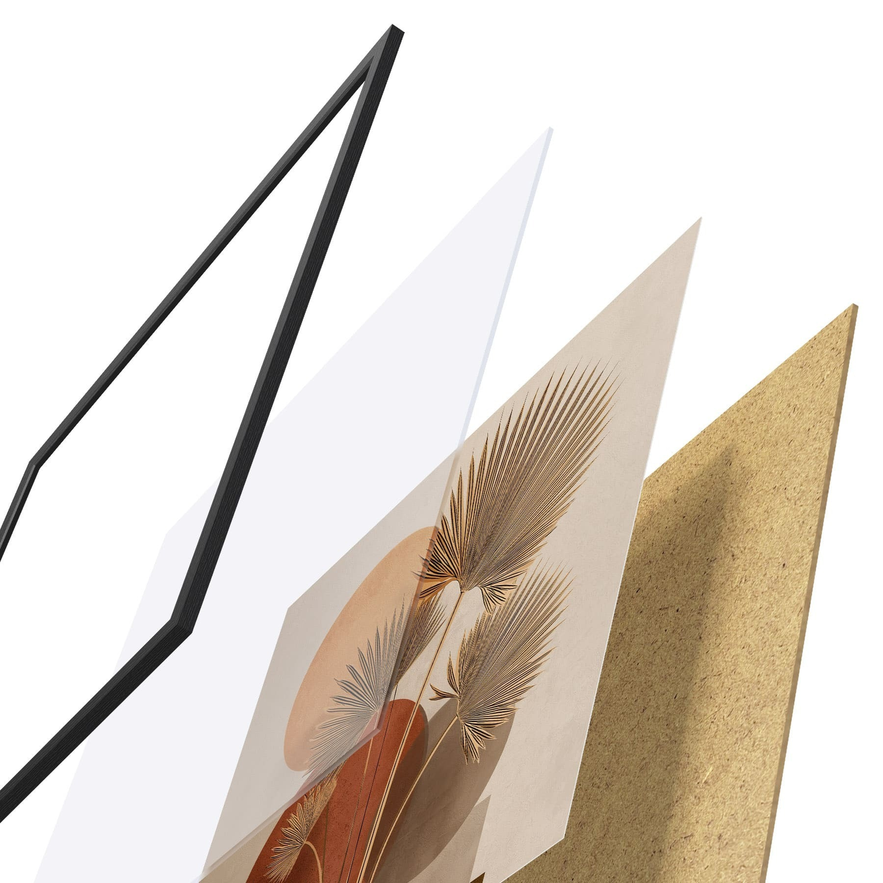L’affiche encadrée est composée d’un cadre, d’un plexiglas, d’une image imprimée et d’un support en aggloméré. Elle est prête à être accrochée au mur grâce aux fixations situées à l’arrière.