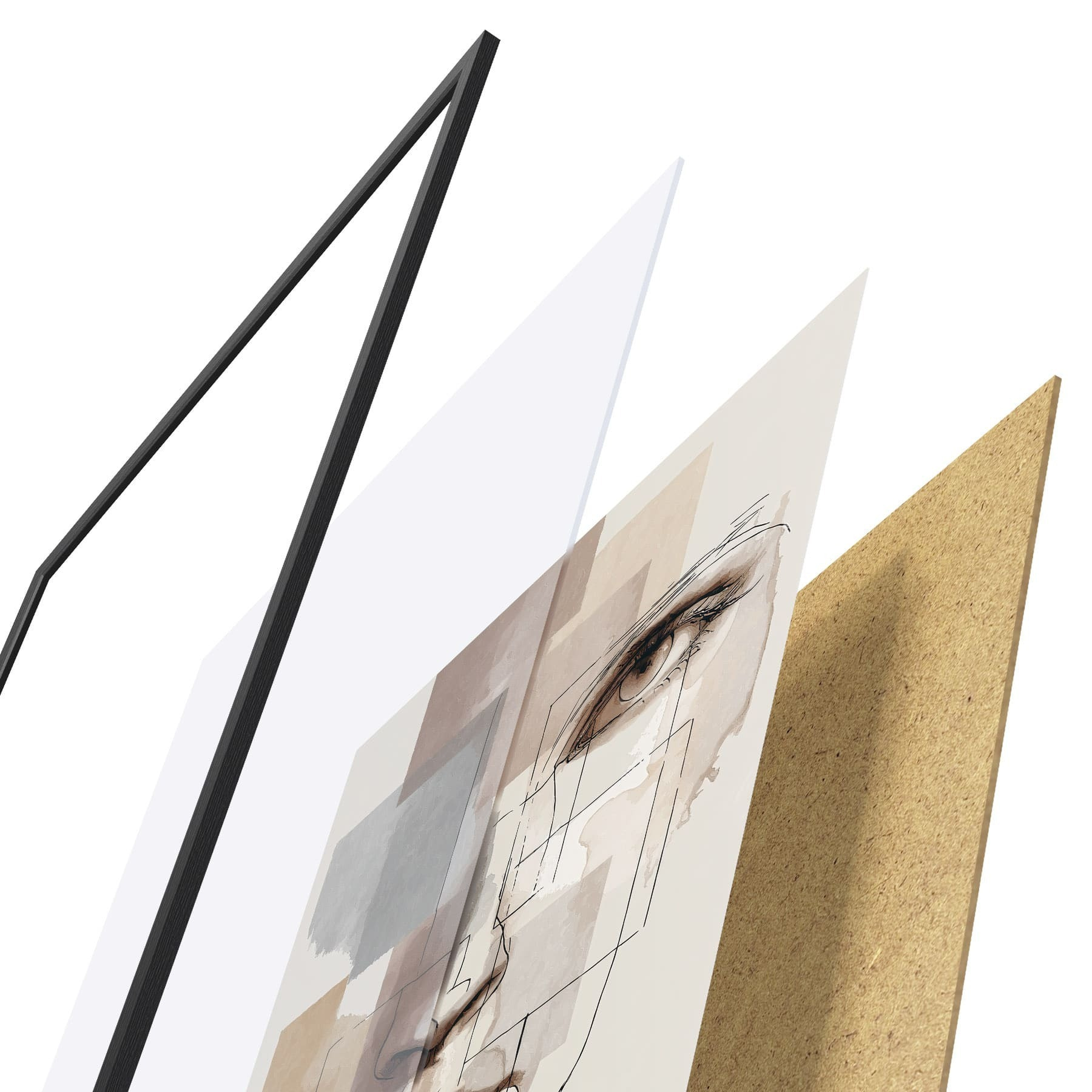 L’affiche encadrée est composée d’un cadre, d’un plexiglas, d’une image imprimée et d’un support en aggloméré. Elle est prête à être accrochée au mur grâce aux fixations situées à l’arrière.