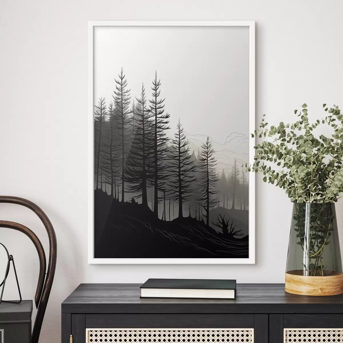 Poster Une forêt brumeuse, un paysage en noir et blanc Nr f48573