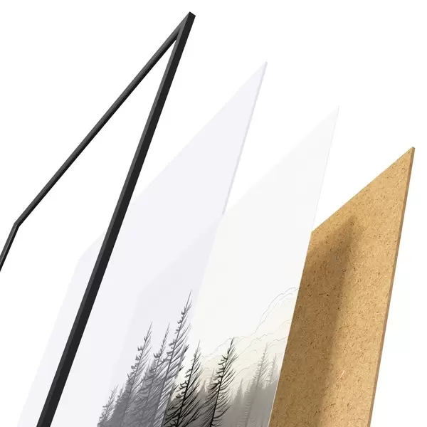 L’affiche encadrée est composée d’un cadre, d’un plexiglas, d’une image imprimée et d’un support en aggloméré. Elle est prête à être accrochée au mur grâce aux fixations situées à l’arrière.