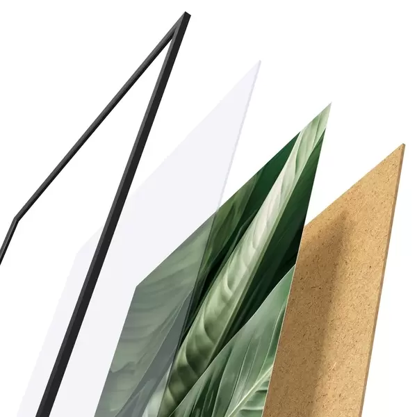 L’affiche encadrée est composée d’un cadre, d’un plexiglas, d’une image imprimée et d’un support en aggloméré. Elle est prête à être accrochée au mur grâce aux fixations situées à l’arrière.