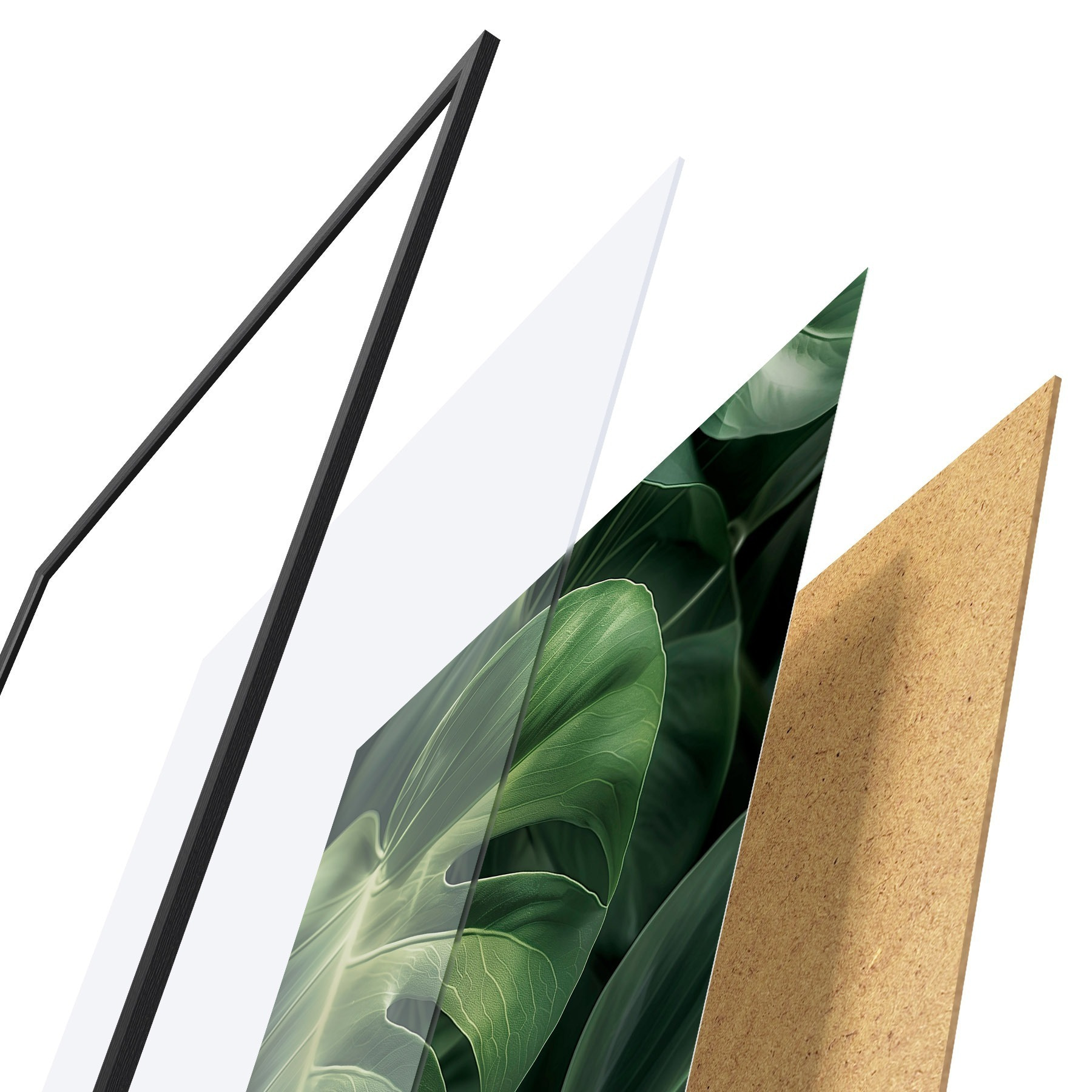 L’affiche encadrée est composée d’un cadre, d’un plexiglas, d’une image imprimée et d’un support en aggloméré. Elle est prête à être accrochée au mur grâce aux fixations situées à l’arrière.