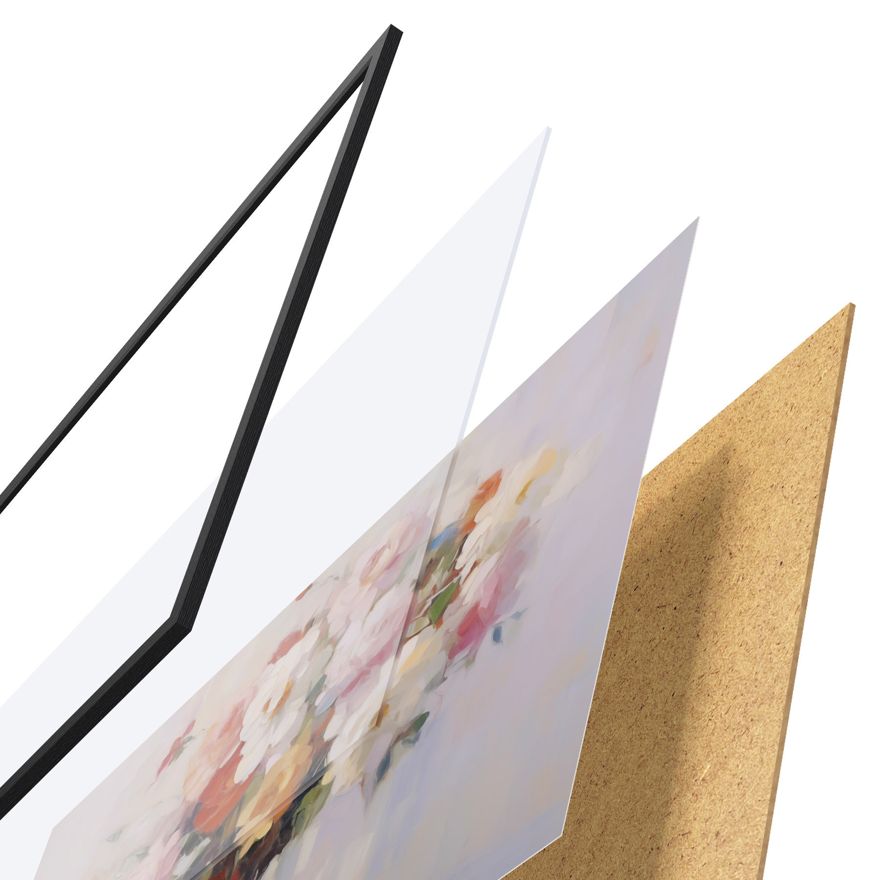 L’affiche encadrée est composée d’un cadre, d’un plexiglas, d’une image imprimée et d’un support en aggloméré. Elle est prête à être accrochée au mur grâce aux fixations situées à l’arrière.