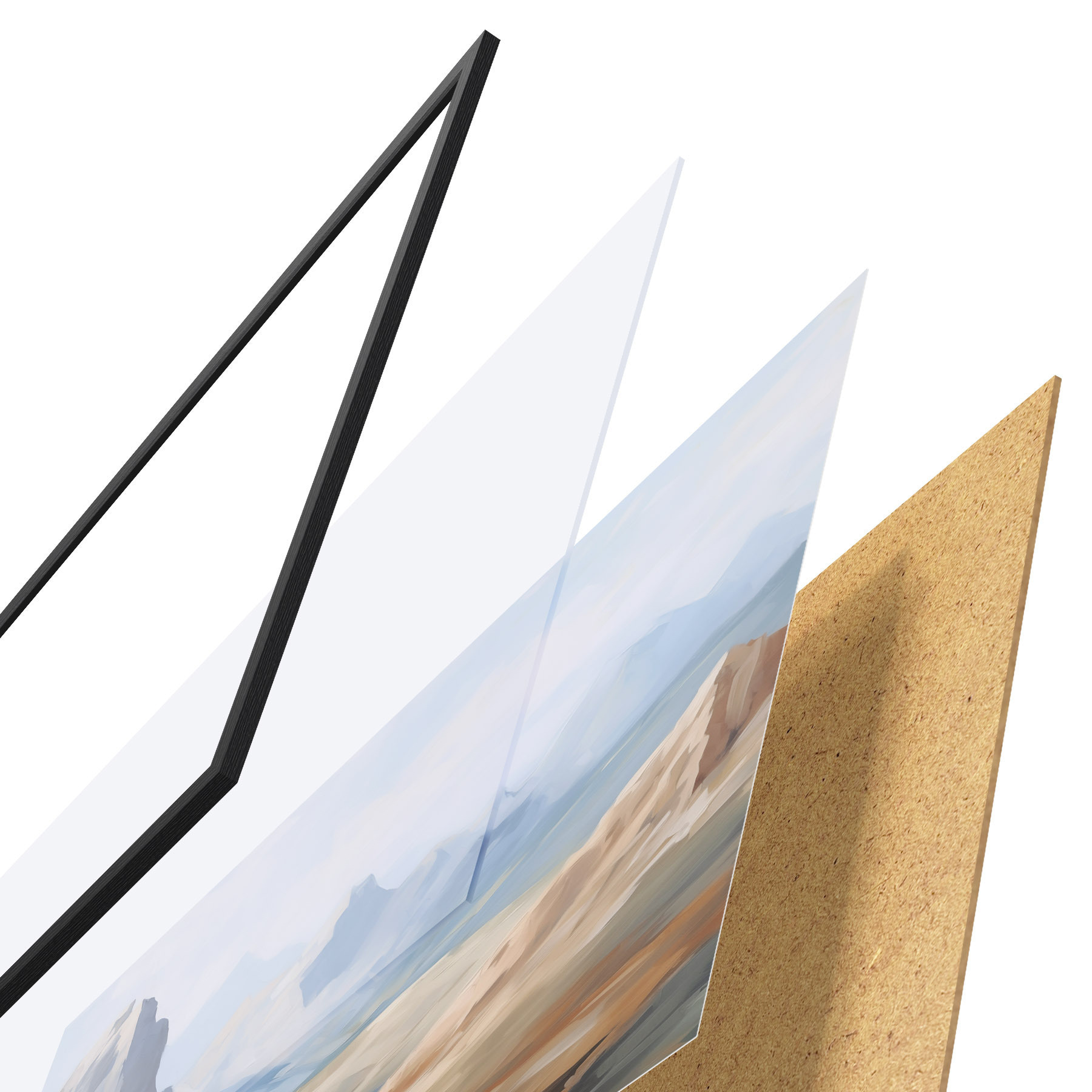 L’affiche encadrée est composée d’un cadre, d’un plexiglas, d’une image imprimée et d’un support en aggloméré. Elle est prête à être accrochée au mur grâce aux fixations situées à l’arrière.