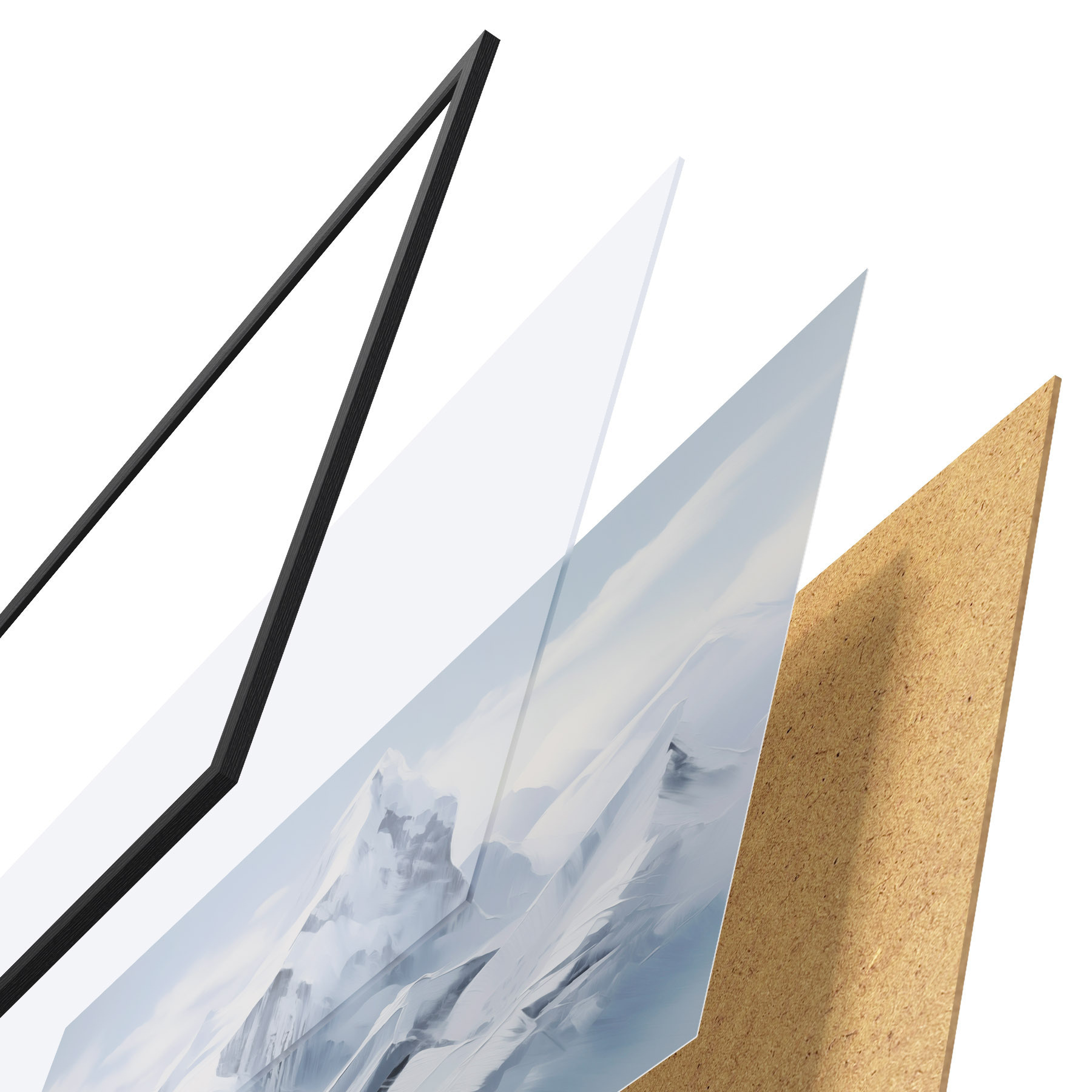 L’affiche encadrée est composée d’un cadre, d’un plexiglas, d’une image imprimée et d’un support en aggloméré. Elle est prête à être accrochée au mur grâce aux fixations situées à l’arrière.
