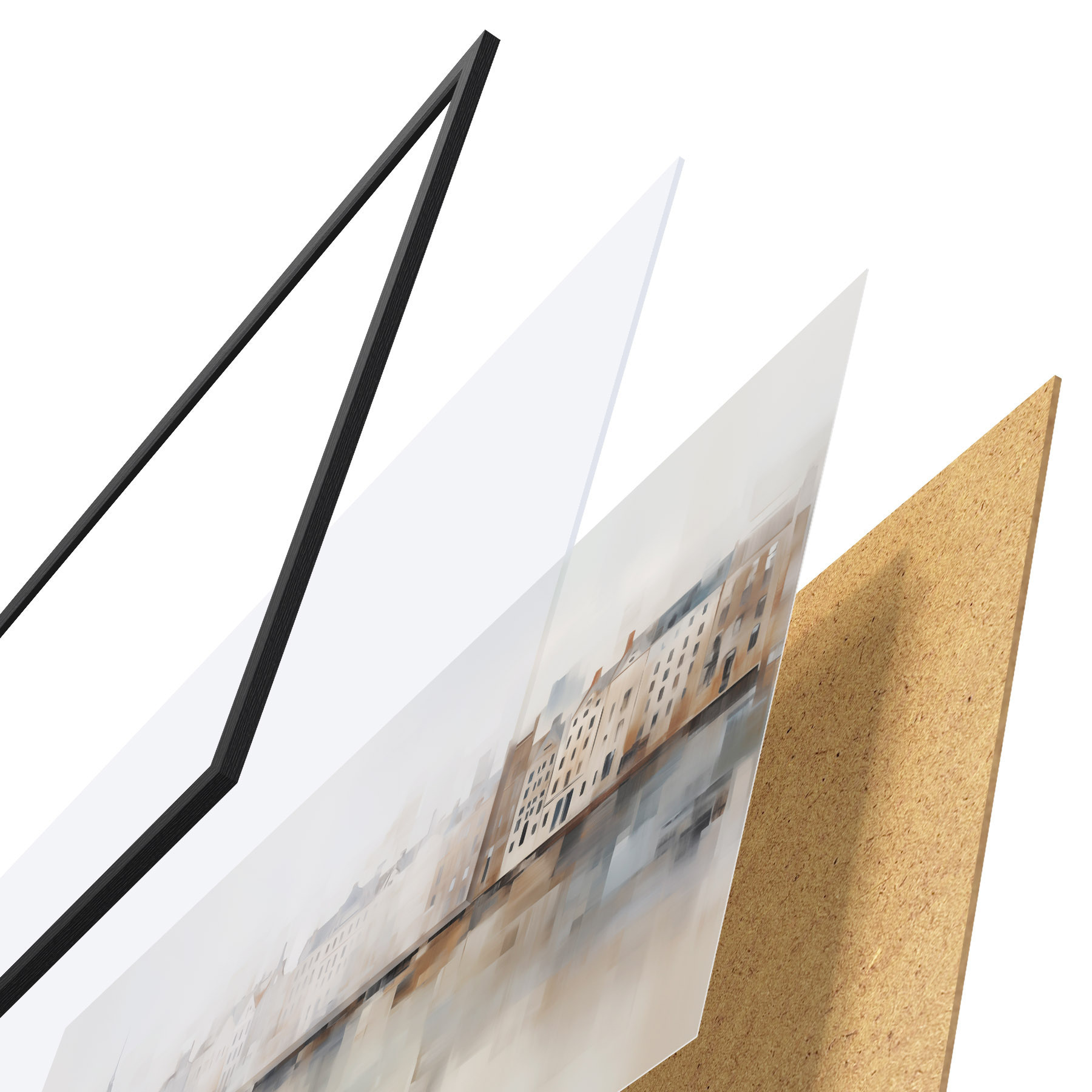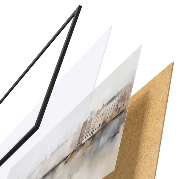 L’affiche encadrée est composée d’un cadre, d’un plexiglas, d’une image imprimée et d’un support en aggloméré. Elle est prête à être accrochée au mur grâce aux fixations situées à l’arrière.