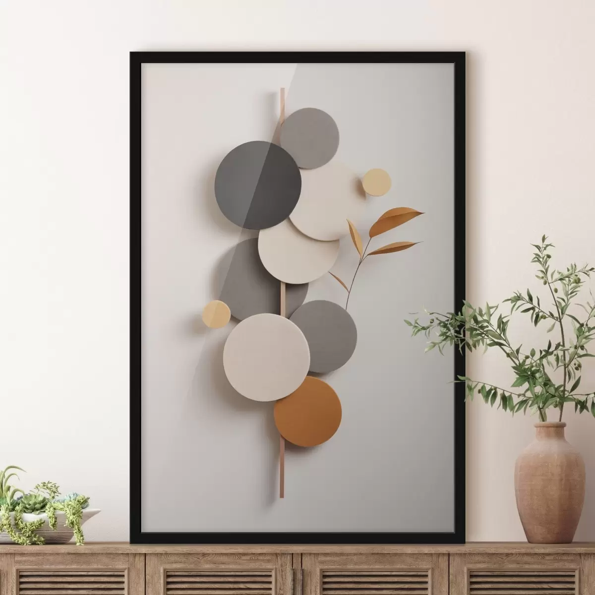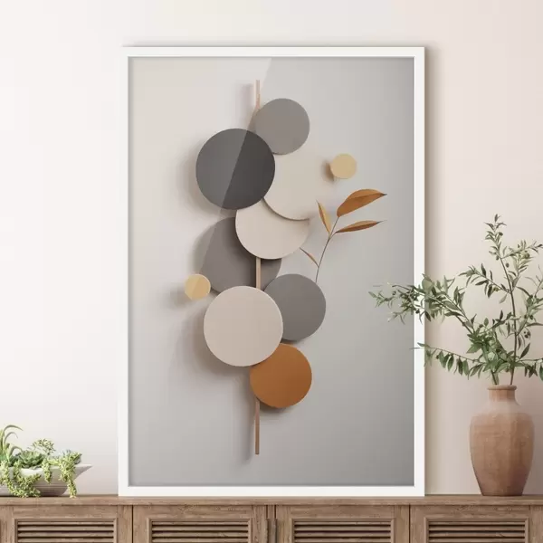 Poster Cercles abstraits avec des feuilles dans des tons neutres Nr f48602