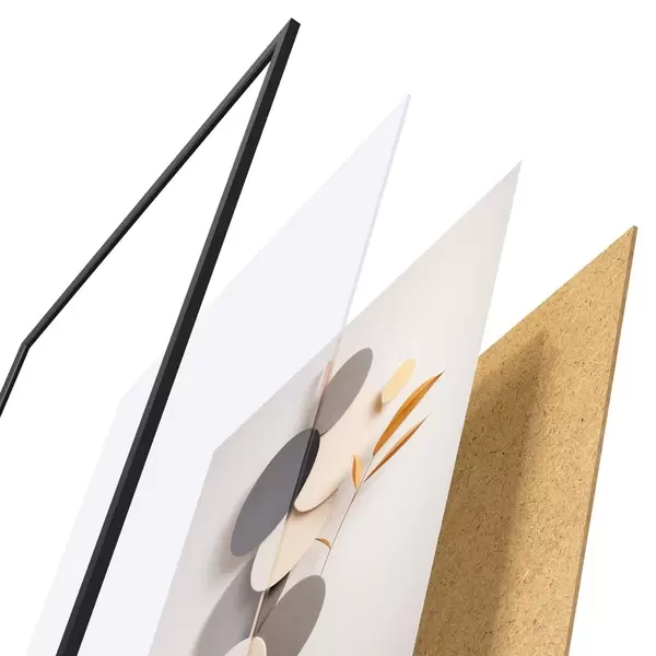 L’affiche encadrée est composée d’un cadre, d’un plexiglas, d’une image imprimée et d’un support en aggloméré. Elle est prête à être accrochée au mur grâce aux fixations situées à l’arrière.