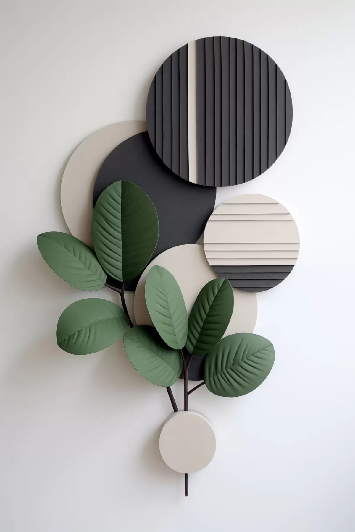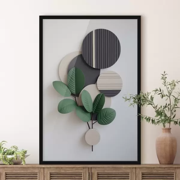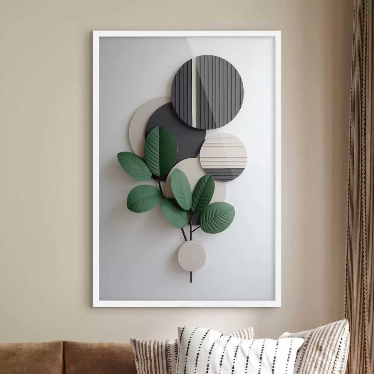 Poster Feuilles vertes avec des éléments ronds en relief Nr f48603