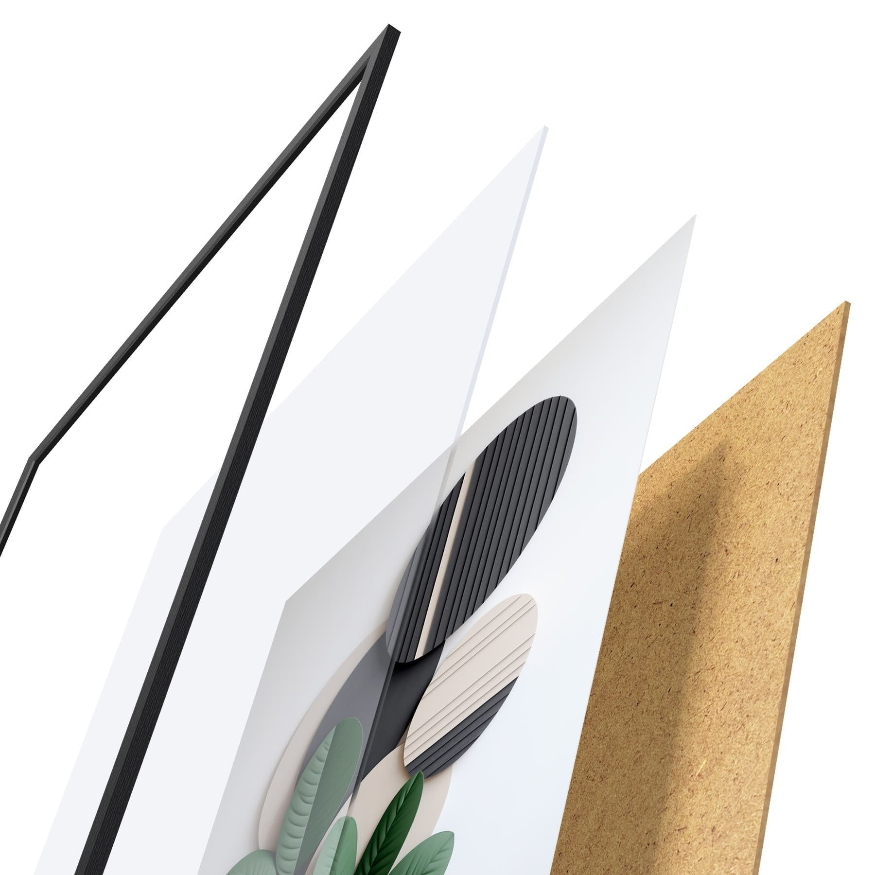 L’affiche encadrée est composée d’un cadre, d’un plexiglas, d’une image imprimée et d’un support en aggloméré. Elle est prête à être accrochée au mur grâce aux fixations situées à l’arrière.