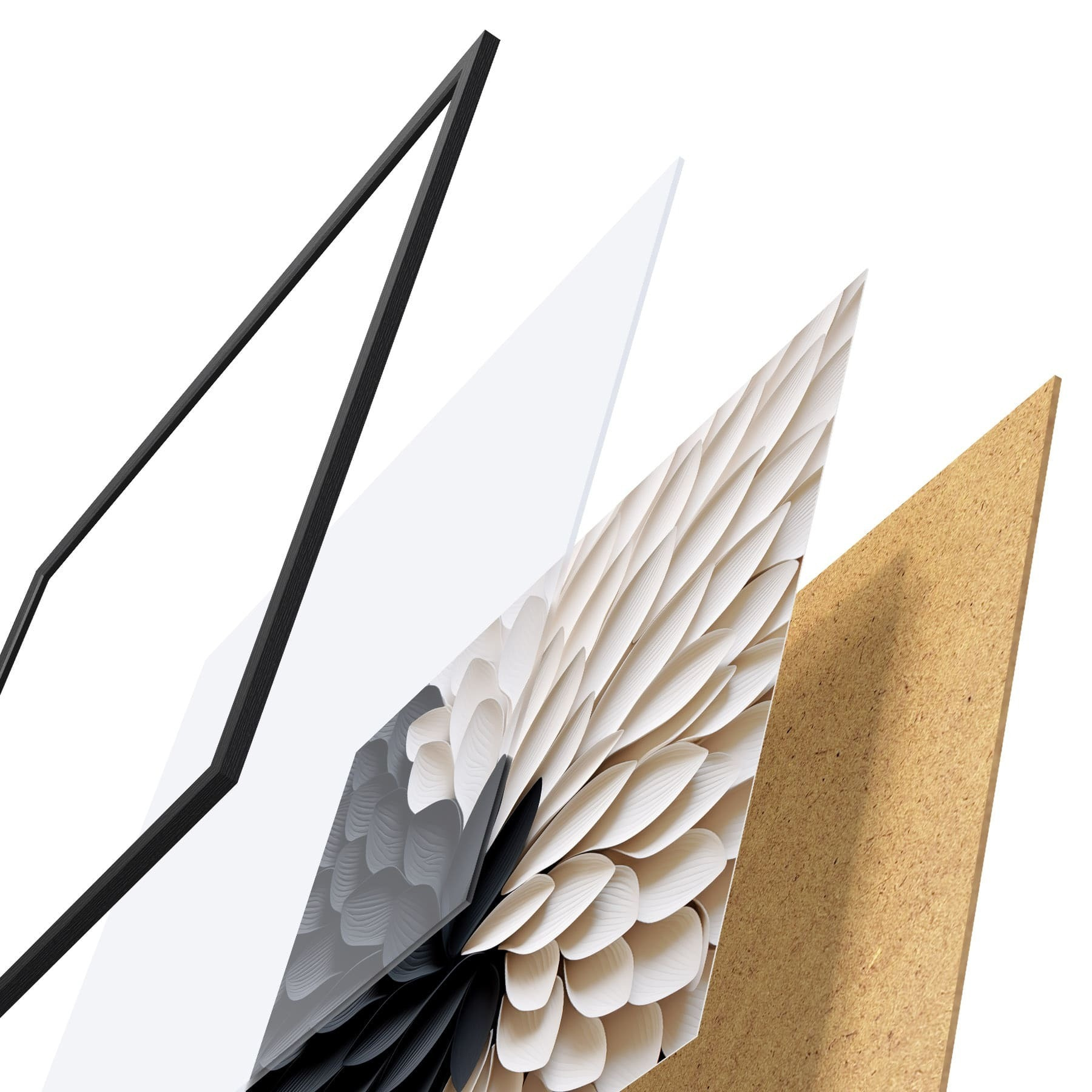L’affiche encadrée est composée d’un cadre, d’un plexiglas, d’une image imprimée et d’un support en aggloméré. Elle est prête à être accrochée au mur grâce aux fixations situées à l’arrière.