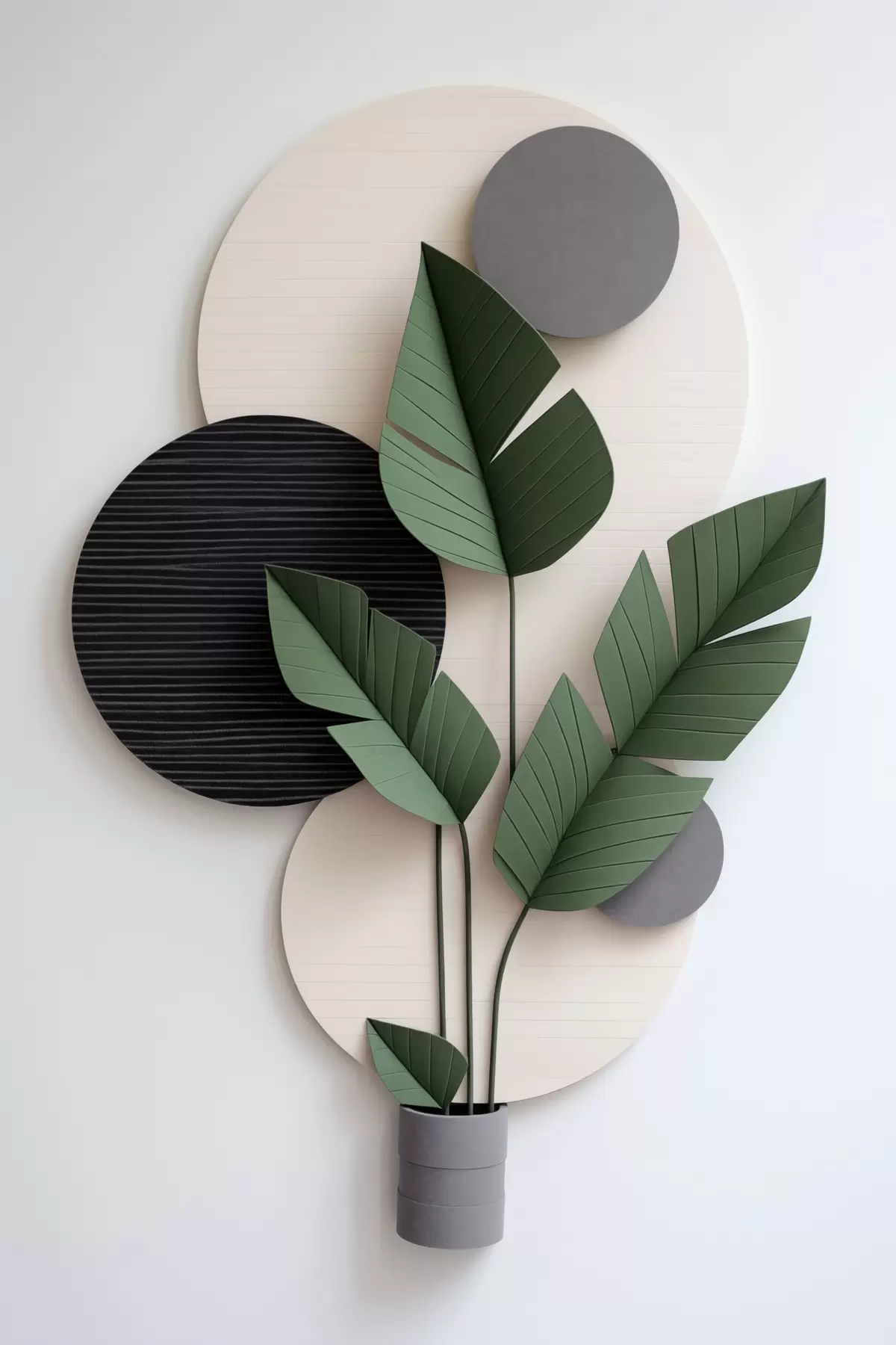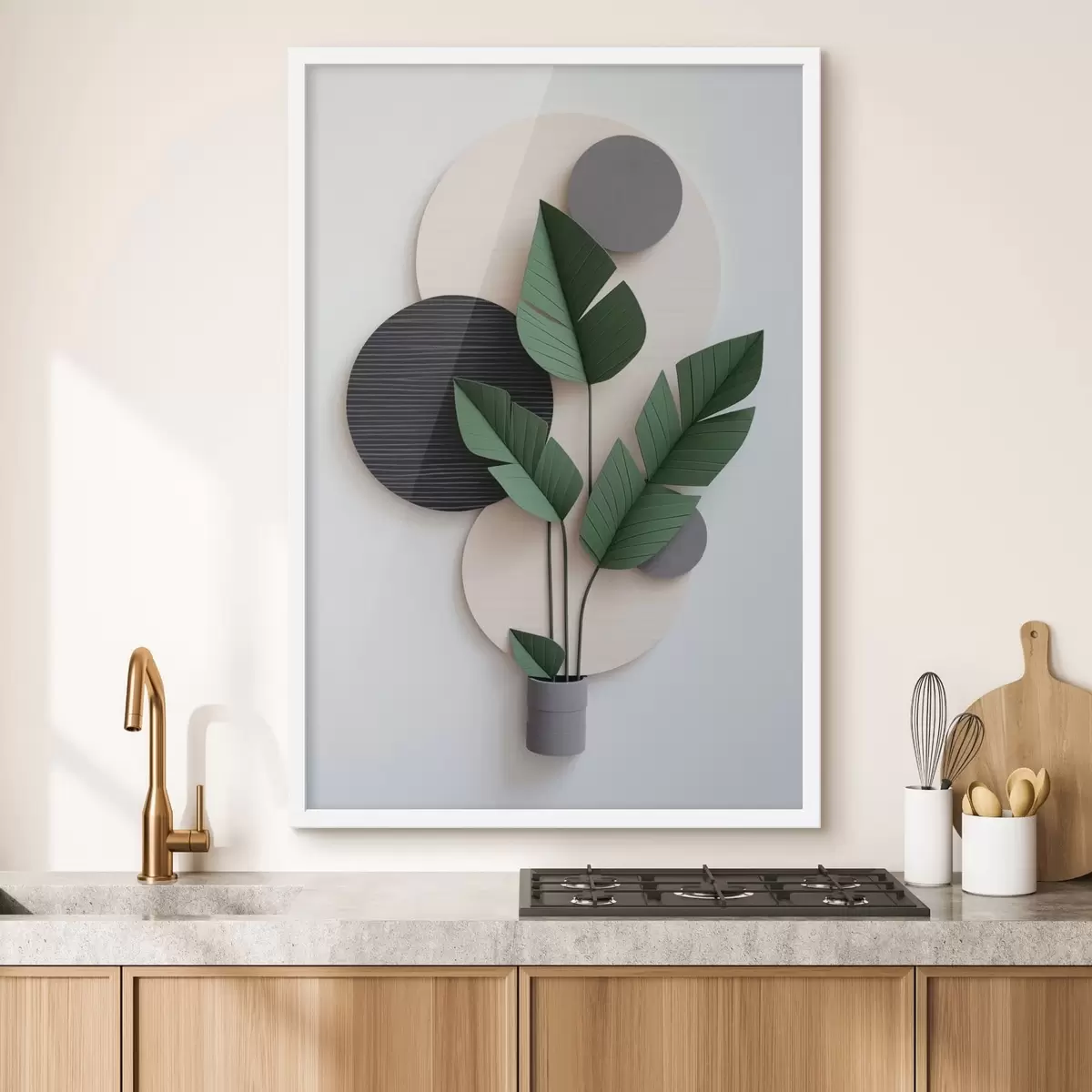 Poster Composition minimaliste composée de cercles géométriques et de feuilles vertes f48607