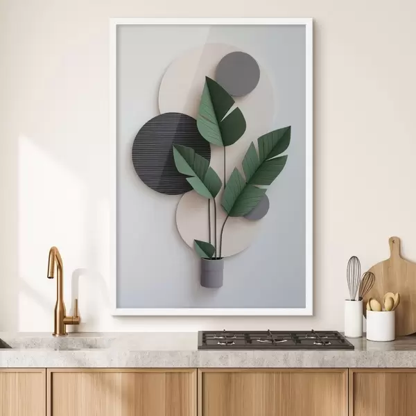 Poster Composition minimaliste composée de cercles géométriques et de feuilles vertes Nr f48607