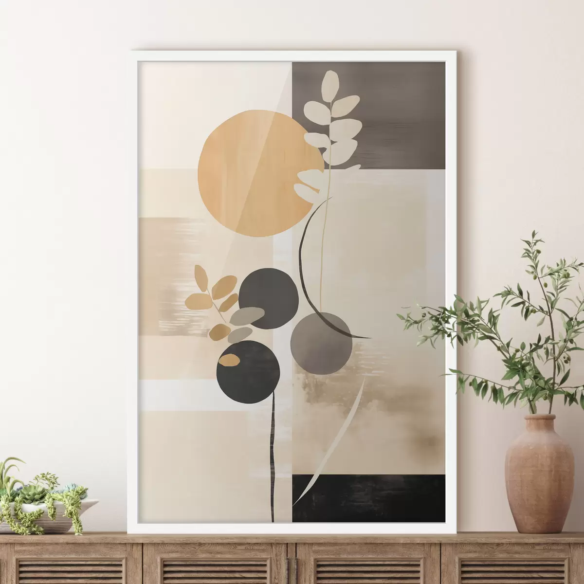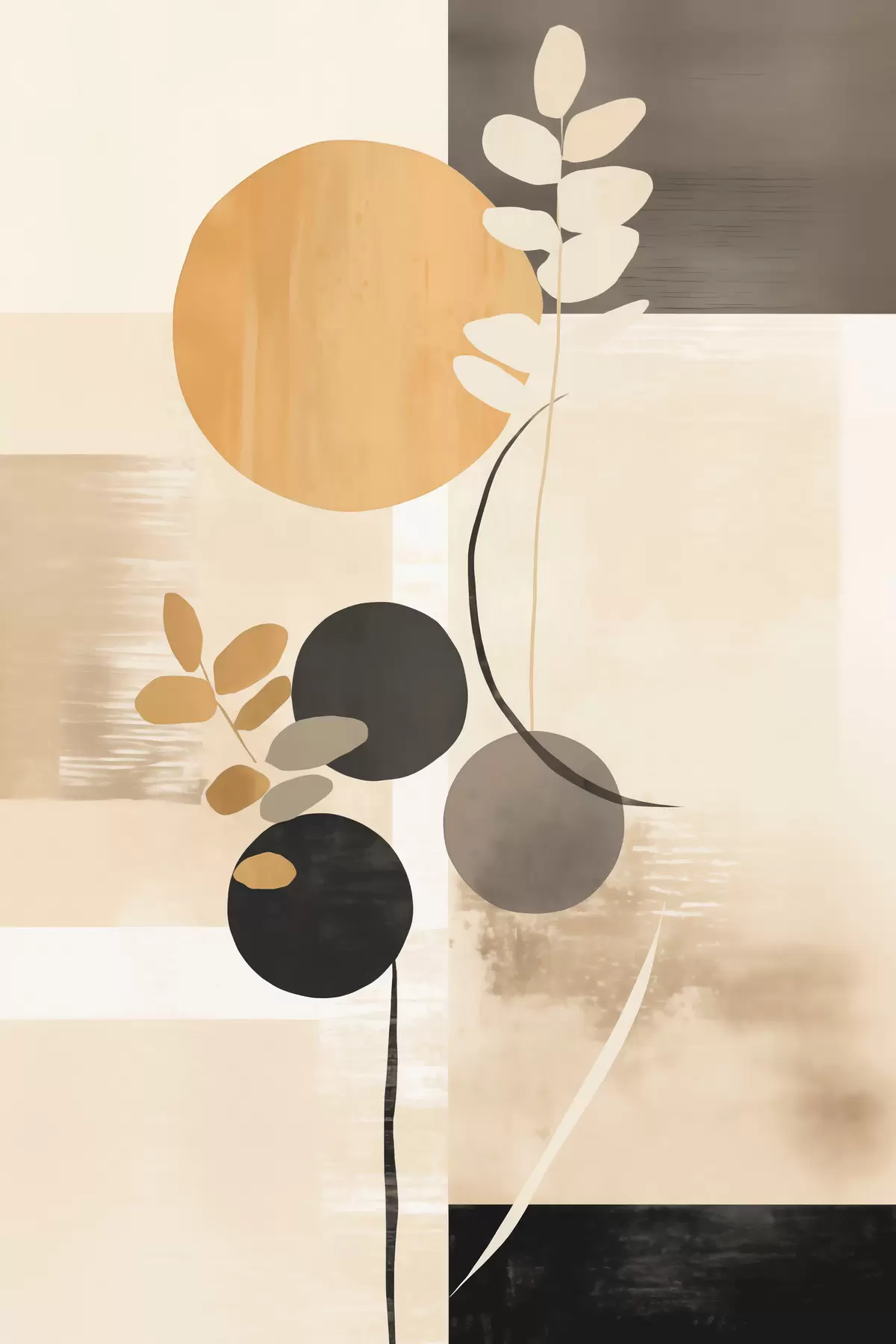 Poster Une composition abstraite avec des feuilles et des cercles Nr f48612
