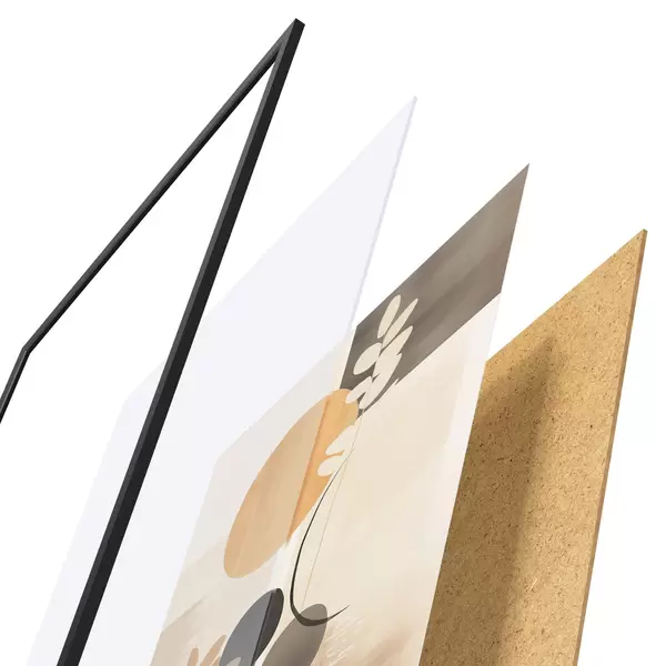 L’affiche encadrée est composée d’un cadre, d’un plexiglas, d’une image imprimée et d’un support en aggloméré. Elle est prête à être accrochée au mur grâce aux fixations situées à l’arrière.