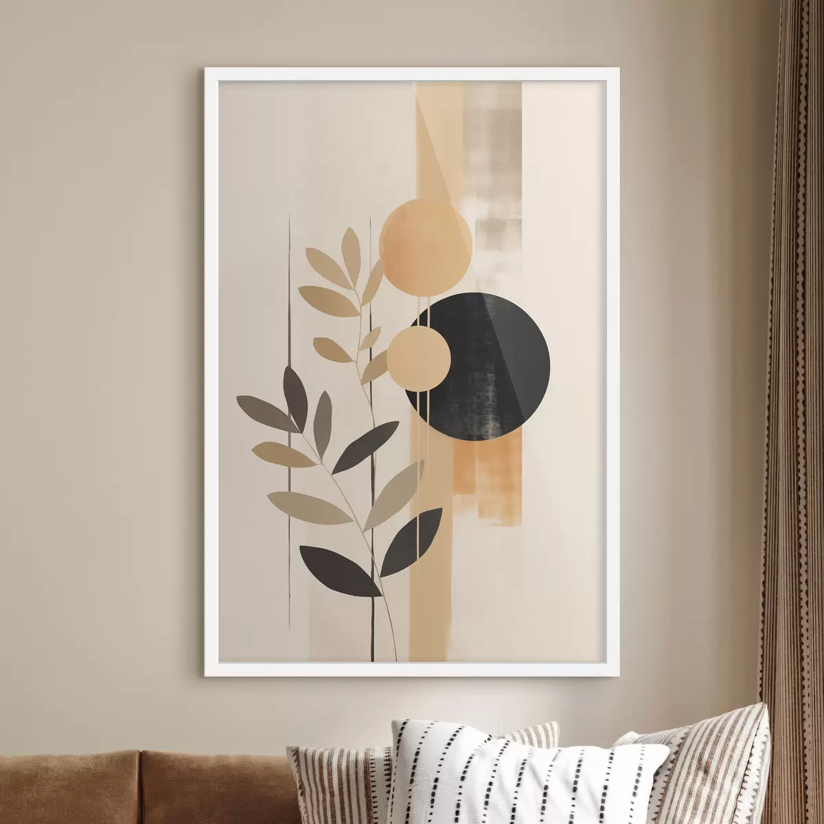 Poster Une composition abstraite avec des feuilles et des cercles Nr f48613