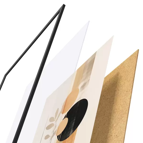L’affiche encadrée est composée d’un cadre, d’un plexiglas, d’une image imprimée et d’un support en aggloméré. Elle est prête à être accrochée au mur grâce aux fixations situées à l’arrière.