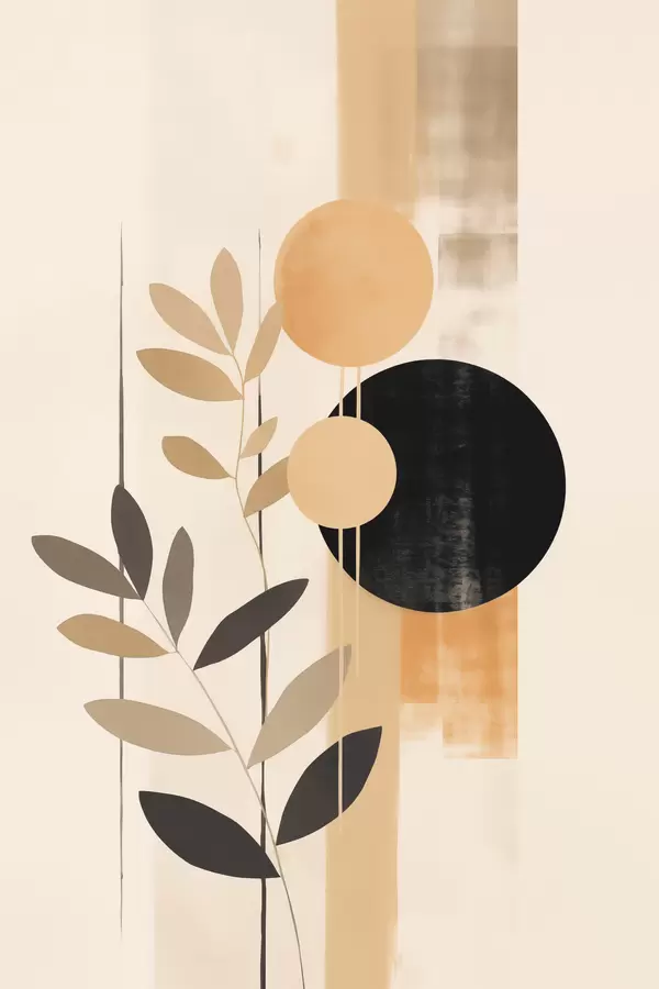 Poster Une composition abstraite avec des feuilles et des cercles Nr f48613
