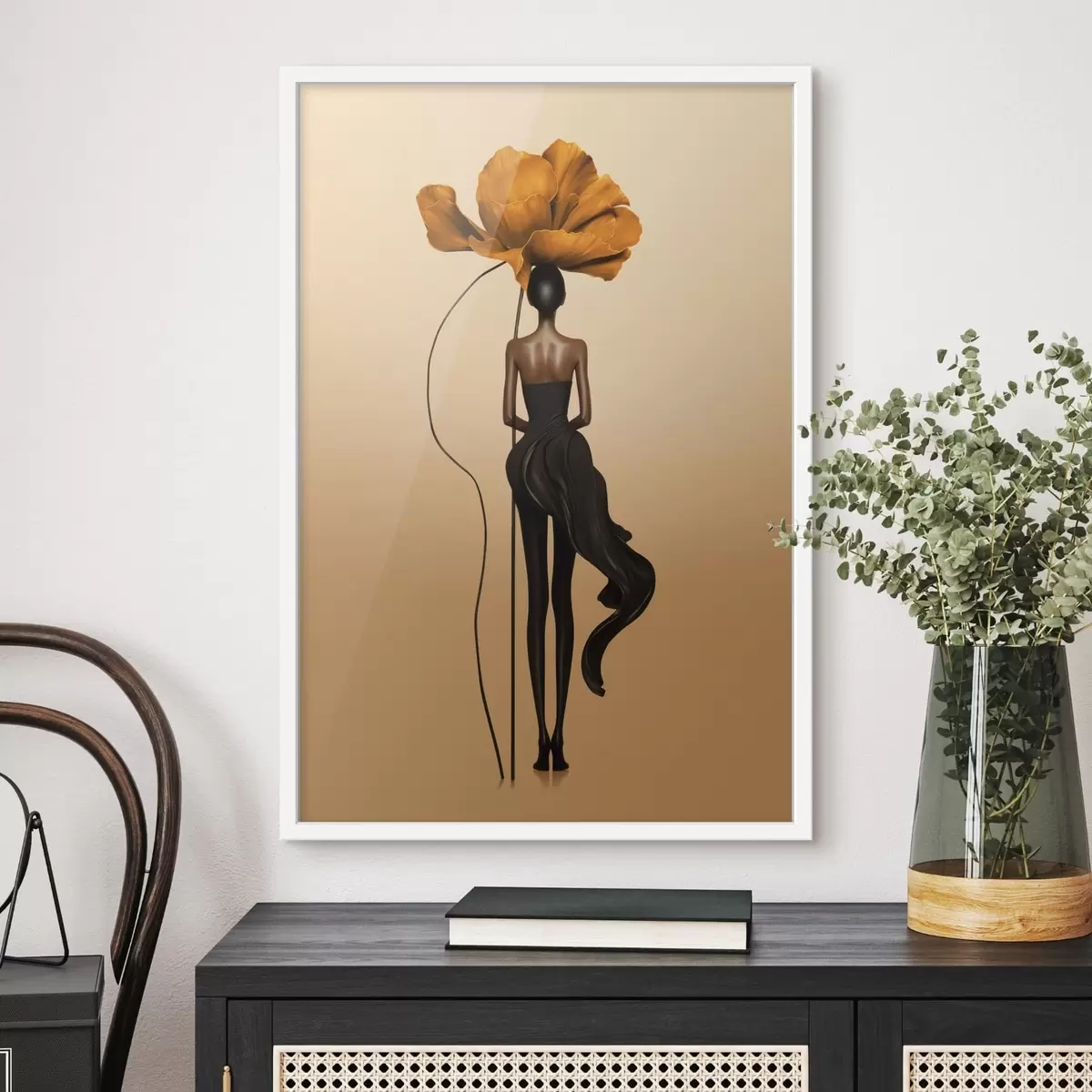 Poster Figurine stylisée dont la tête est une grande fleur f48618