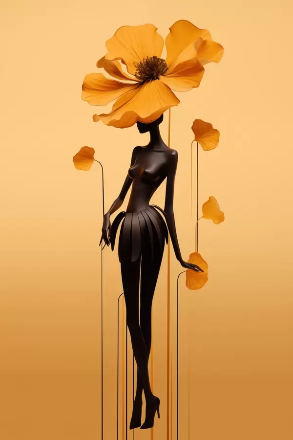 Poster Une silhouette élégante ornée de fleurs sur un fond aux tons dégradés chauds Nr f48619