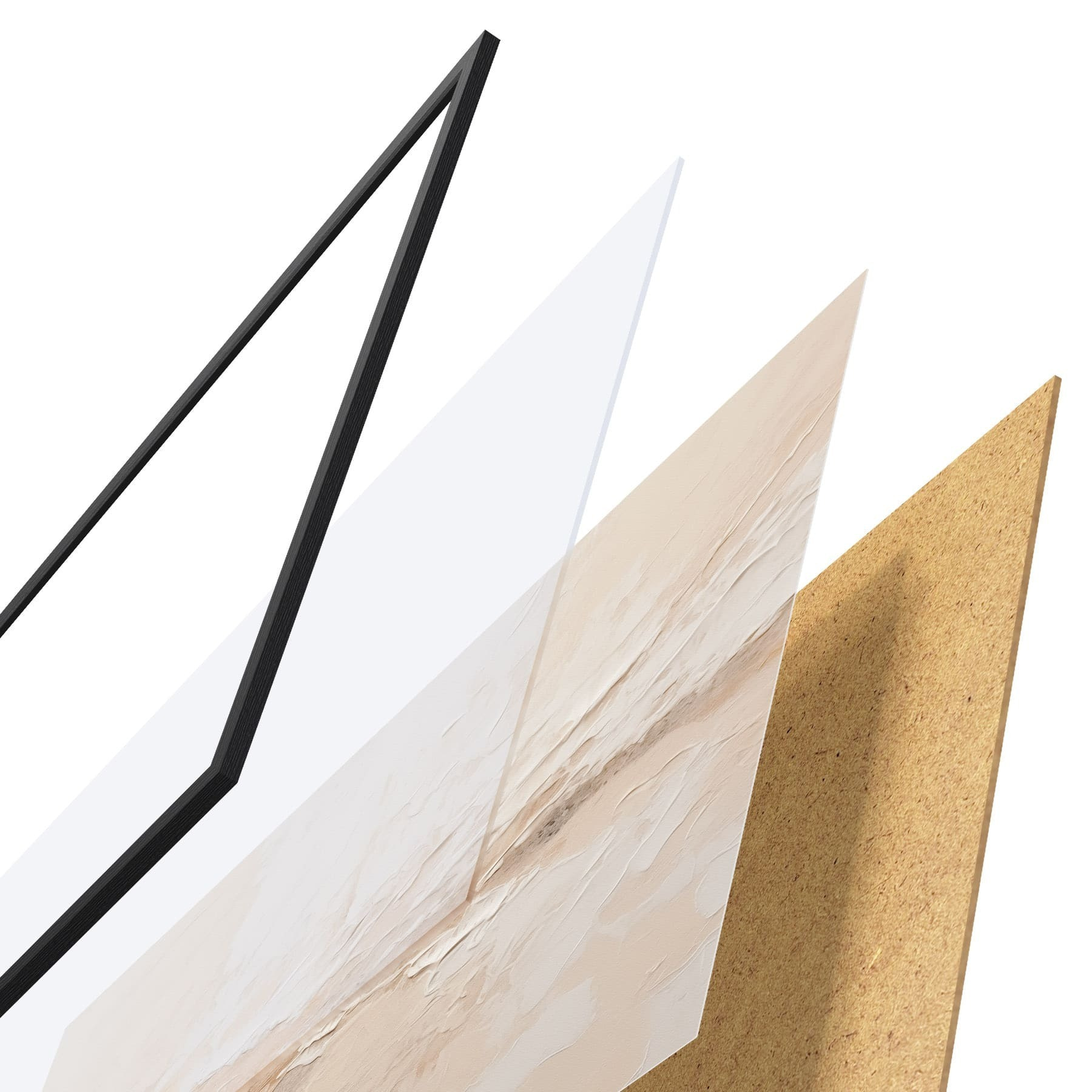 L’affiche encadrée est composée d’un cadre, d’un plexiglas, d’une image imprimée et d’un support en aggloméré. Elle est prête à être accrochée au mur grâce aux fixations situées à l’arrière.
