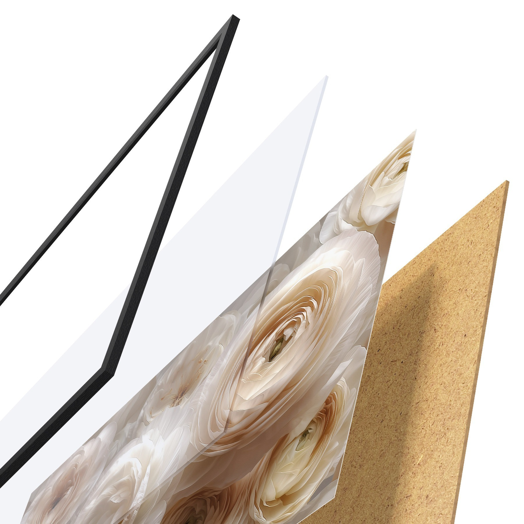 L’affiche encadrée est composée d’un cadre, d’un plexiglas, d’une image imprimée et d’un support en aggloméré. Elle est prête à être accrochée au mur grâce aux fixations situées à l’arrière.