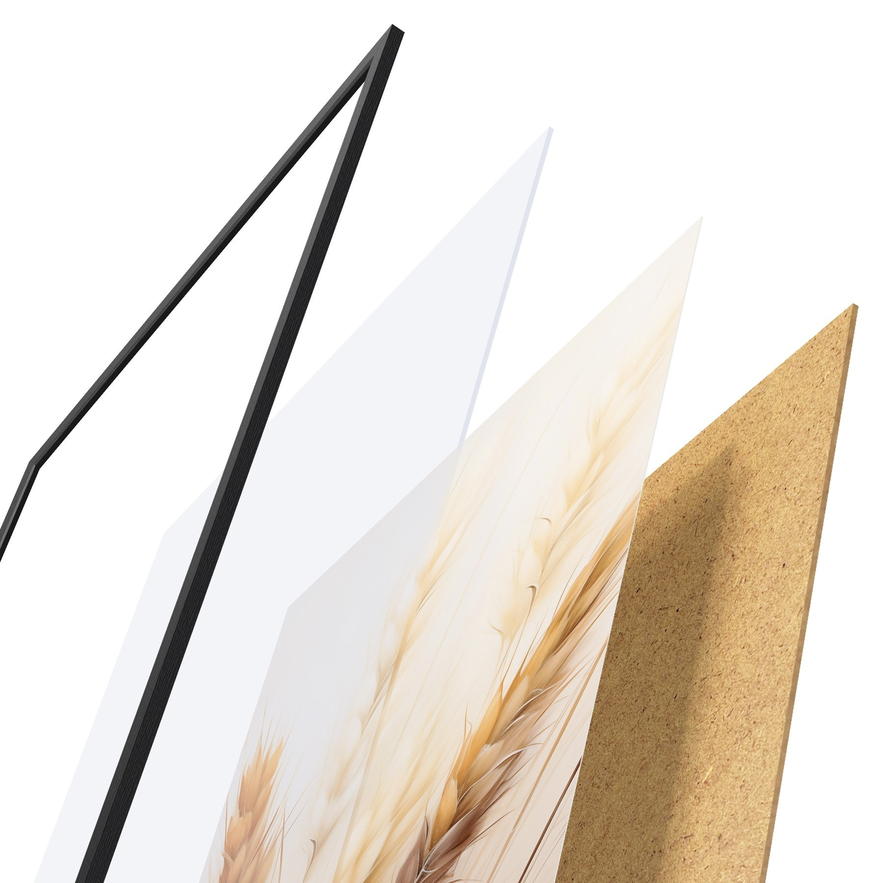 L’affiche encadrée est composée d’un cadre, d’un plexiglas, d’une image imprimée et d’un support en aggloméré. Elle est prête à être accrochée au mur grâce aux fixations situées à l’arrière.