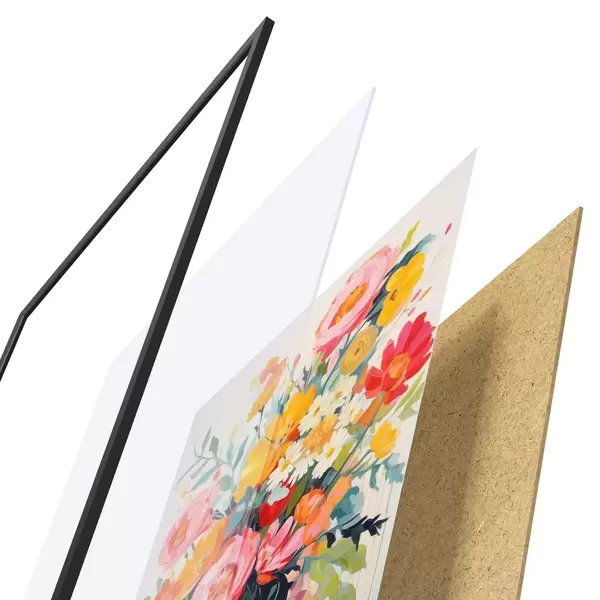 L’affiche encadrée est composée d’un cadre, d’un plexiglas, d’une image imprimée et d’un support en aggloméré. Elle est prête à être accrochée au mur grâce aux fixations situées à l’arrière.