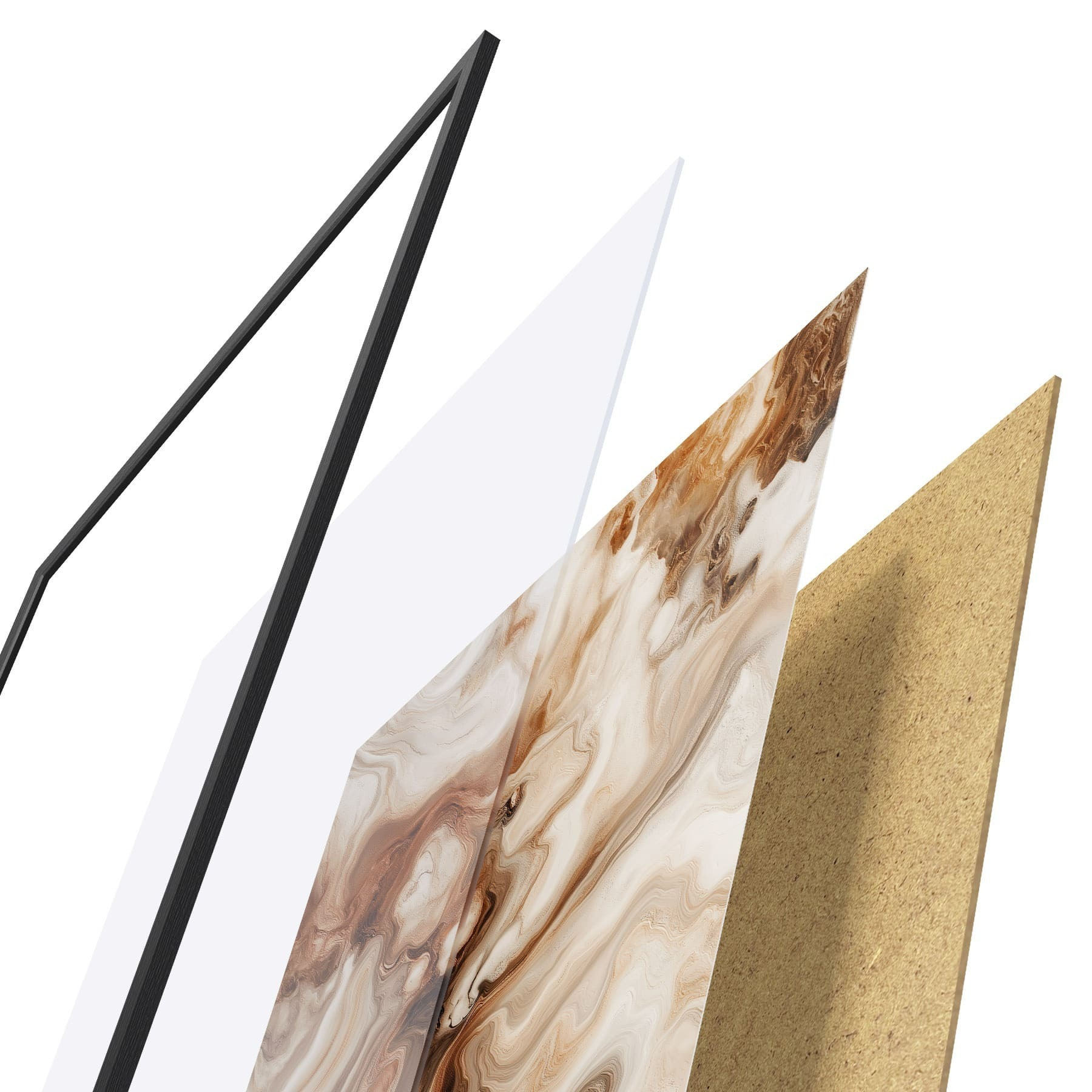 L’affiche encadrée est composée d’un cadre, d’un plexiglas, d’une image imprimée et d’un support en aggloméré. Elle est prête à être accrochée au mur grâce aux fixations situées à l’arrière.