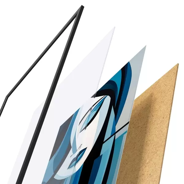 L’affiche encadrée est composée d’un cadre, d’un plexiglas, d’une image imprimée et d’un support en aggloméré. Elle est prête à être accrochée au mur grâce aux fixations situées à l’arrière.