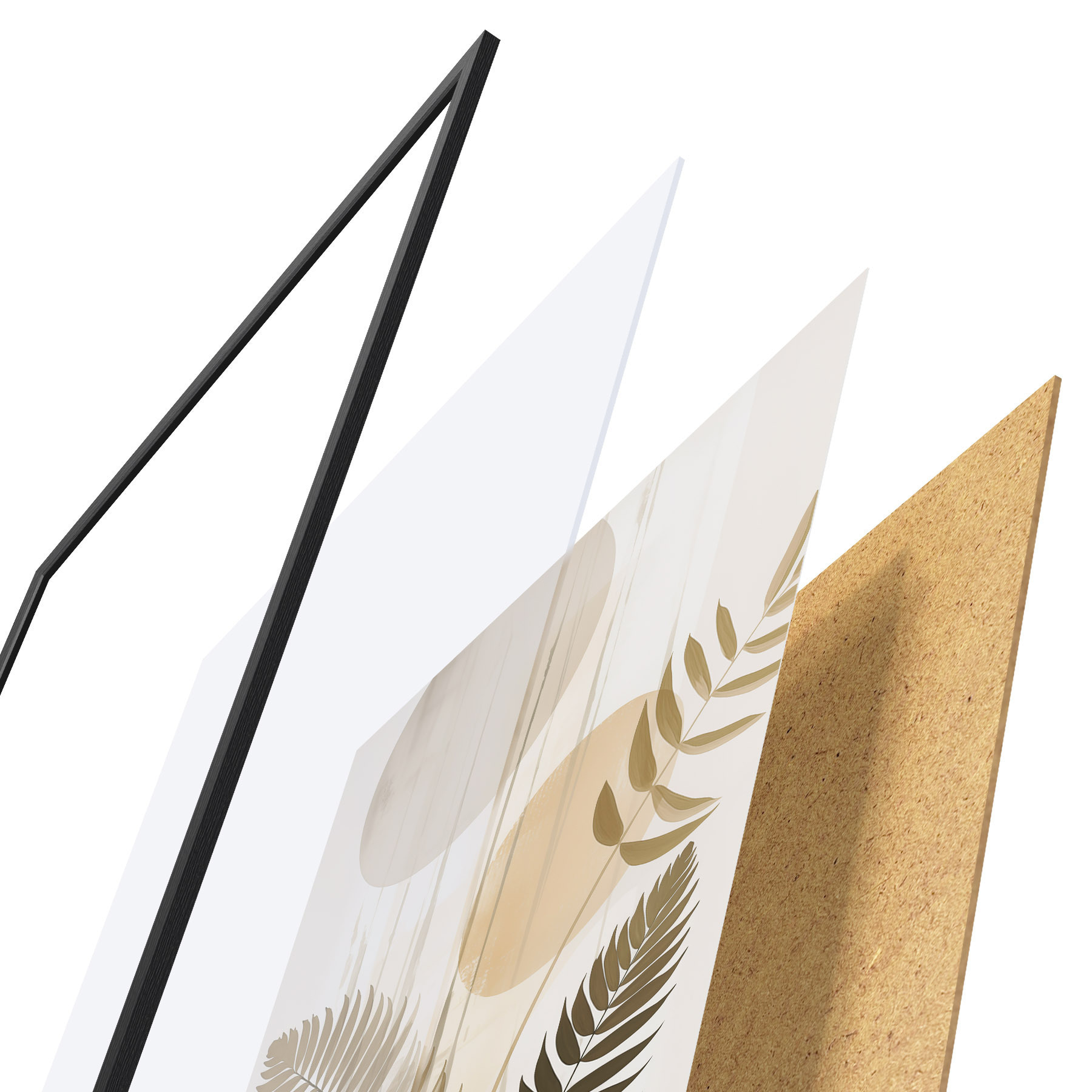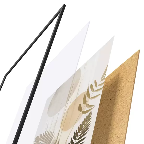 L’affiche encadrée est composée d’un cadre, d’un plexiglas, d’une image imprimée et d’un support en aggloméré. Elle est prête à être accrochée au mur grâce aux fixations situées à l’arrière.