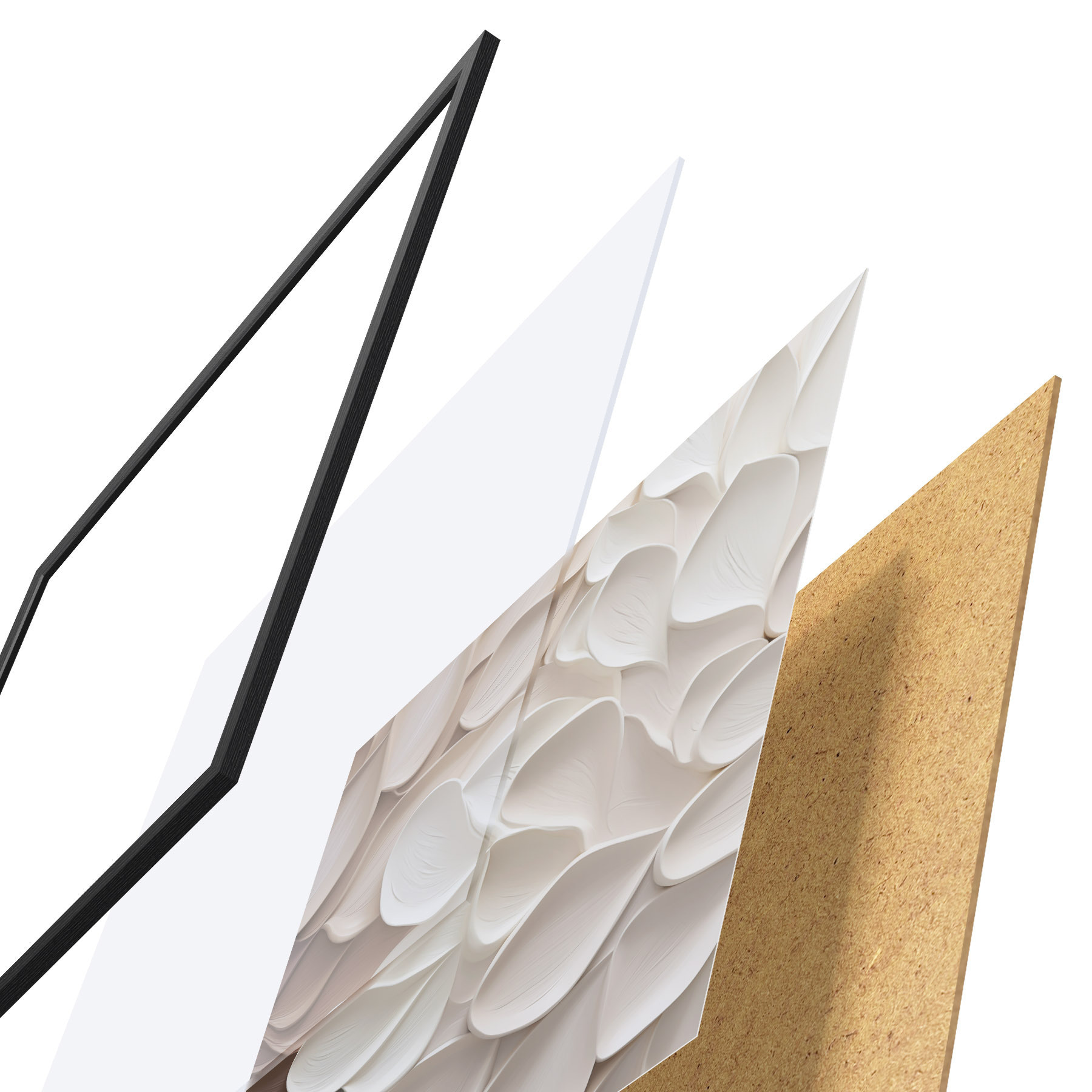 L’affiche encadrée est composée d’un cadre, d’un plexiglas, d’une image imprimée et d’un support en aggloméré. Elle est prête à être accrochée au mur grâce aux fixations situées à l’arrière.
