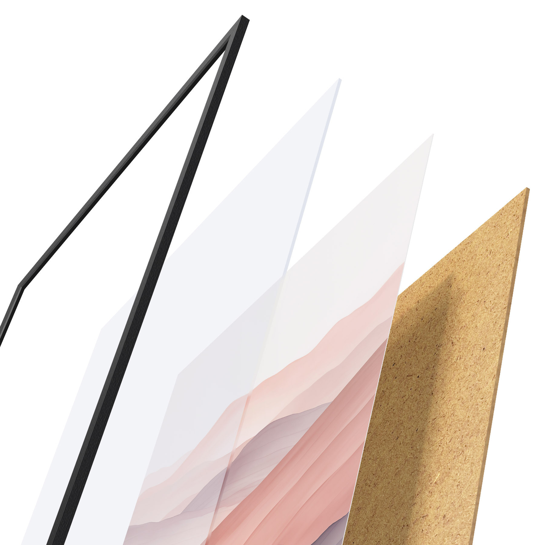 L’affiche encadrée est composée d’un cadre, d’un plexiglas, d’une image imprimée et d’un support en aggloméré. Elle est prête à être accrochée au mur grâce aux fixations situées à l’arrière.