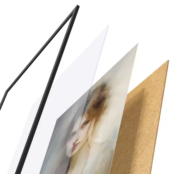 L’affiche encadrée est composée d’un cadre, d’un plexiglas, d’une image imprimée et d’un support en aggloméré. Elle est prête à être accrochée au mur grâce aux fixations situées à l’arrière.