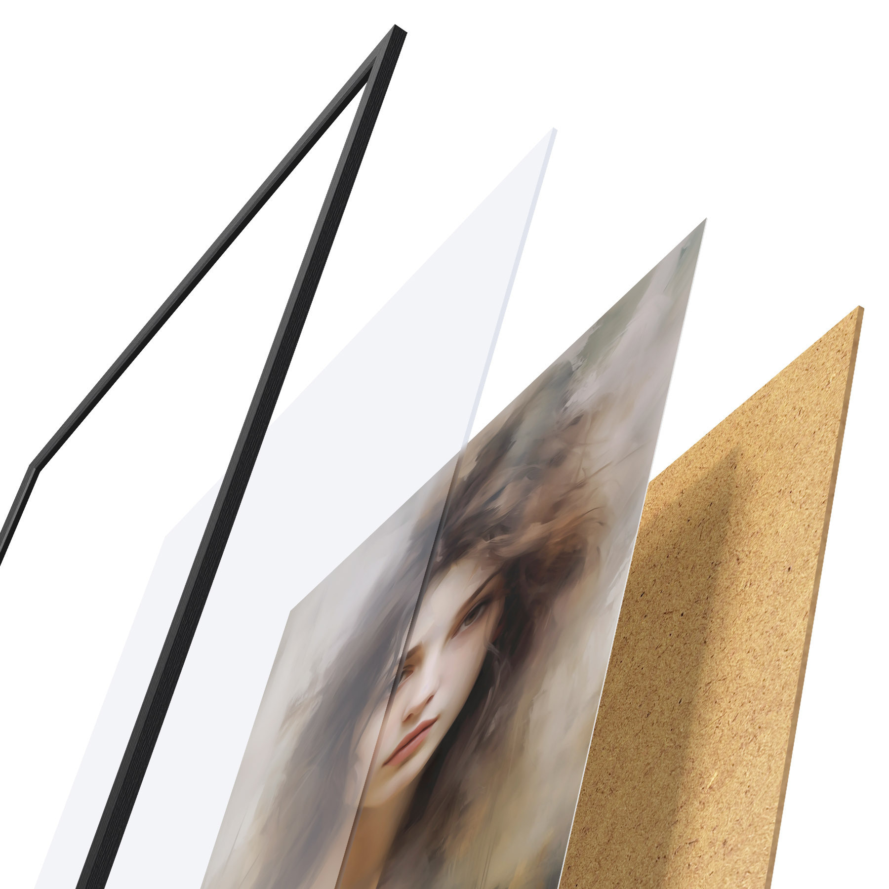 L’affiche encadrée est composée d’un cadre, d’un plexiglas, d’une image imprimée et d’un support en aggloméré. Elle est prête à être accrochée au mur grâce aux fixations situées à l’arrière.