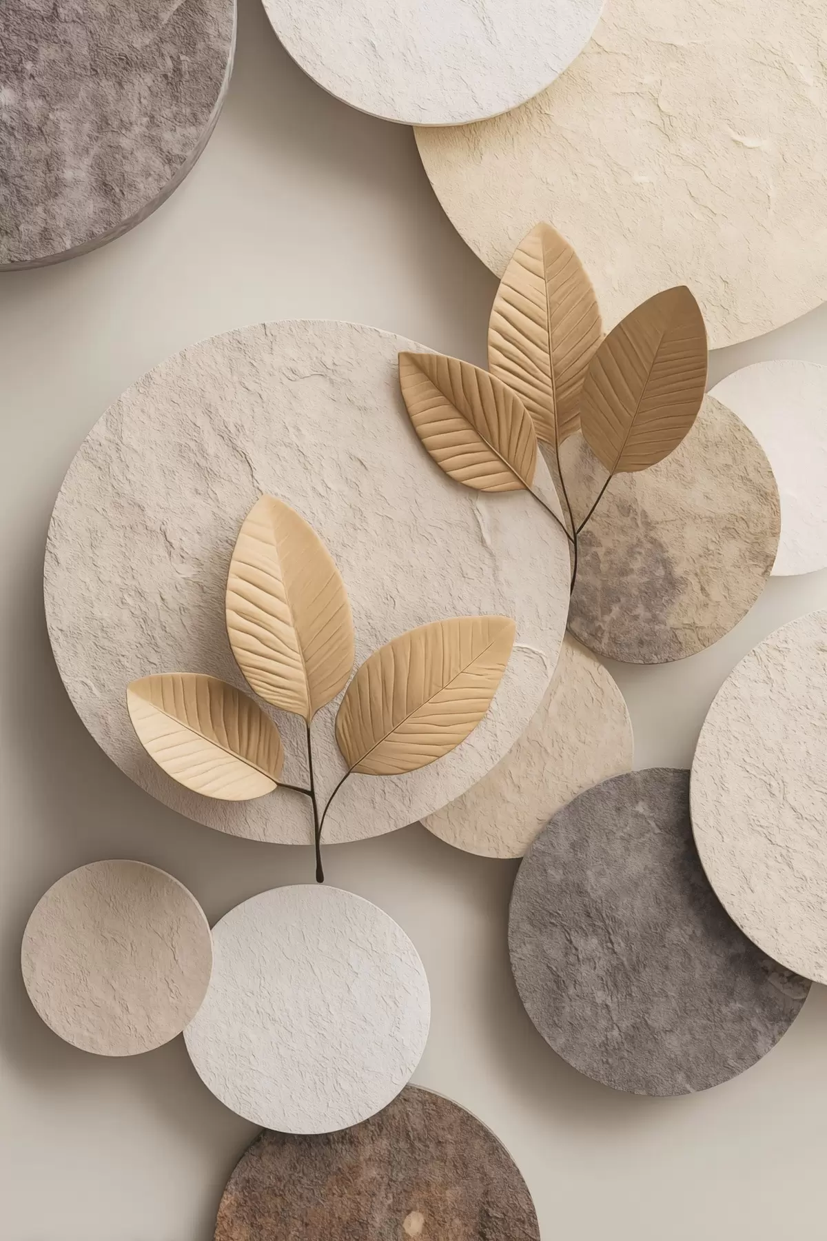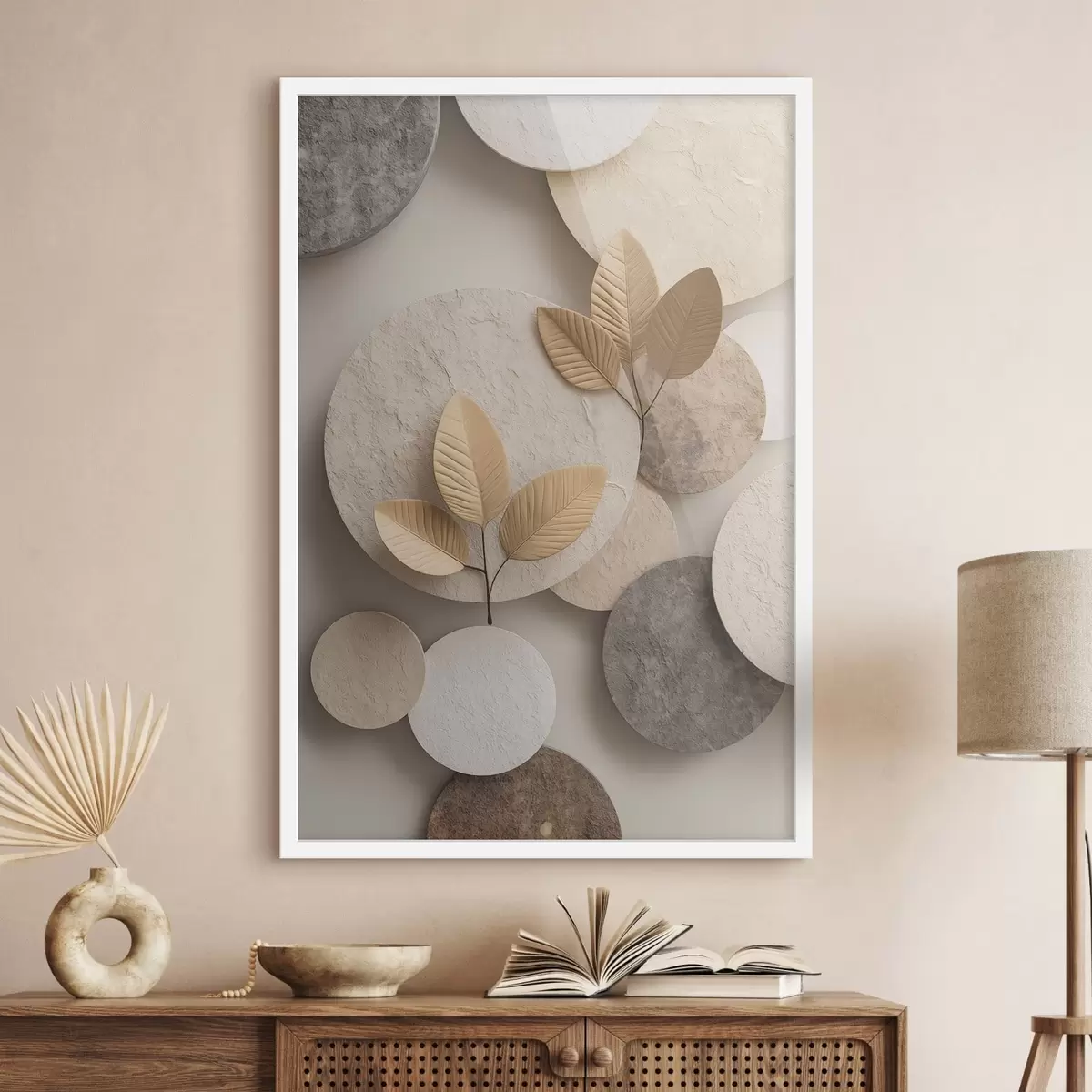 Poster Une composition avec des feuilles et des cercles Nr f48692