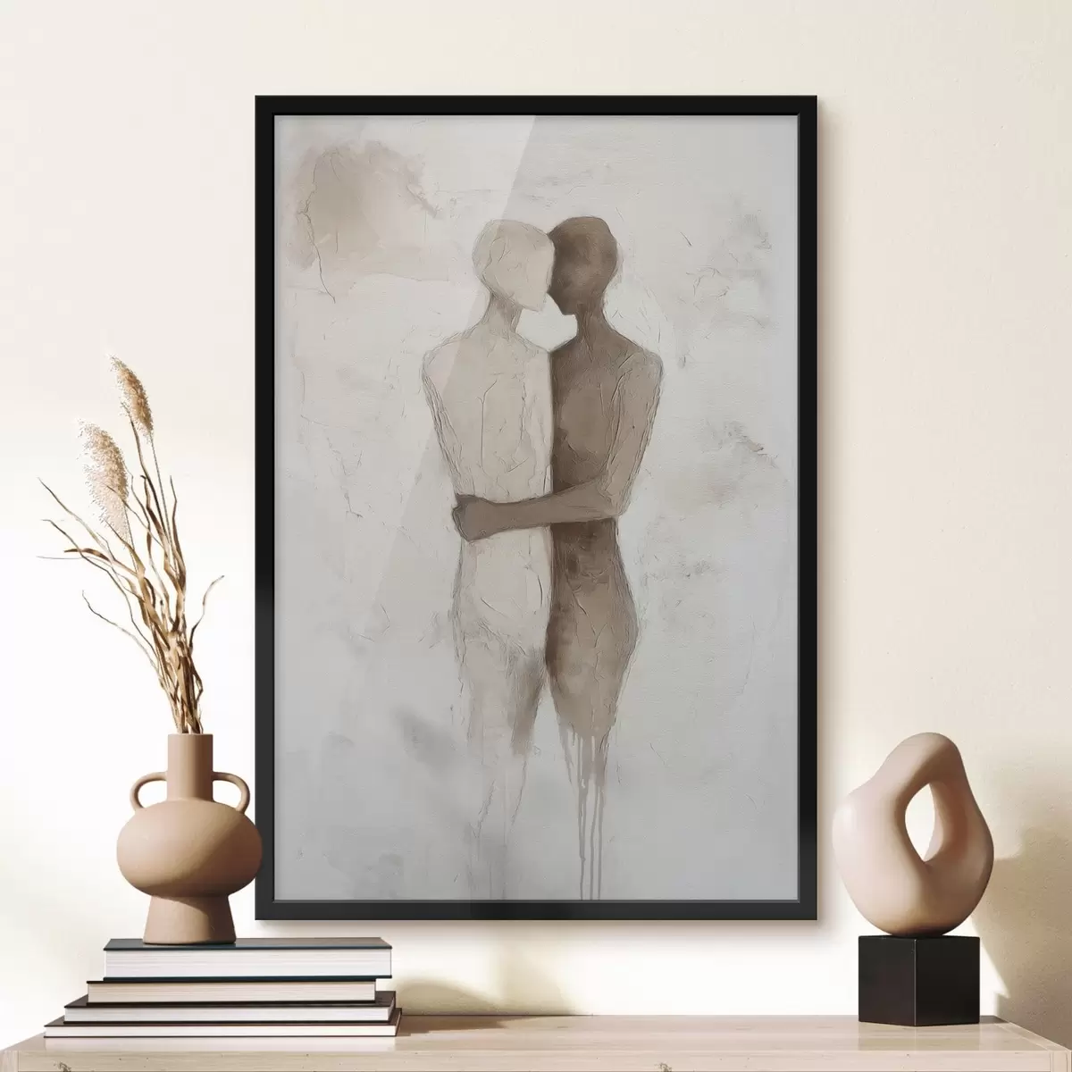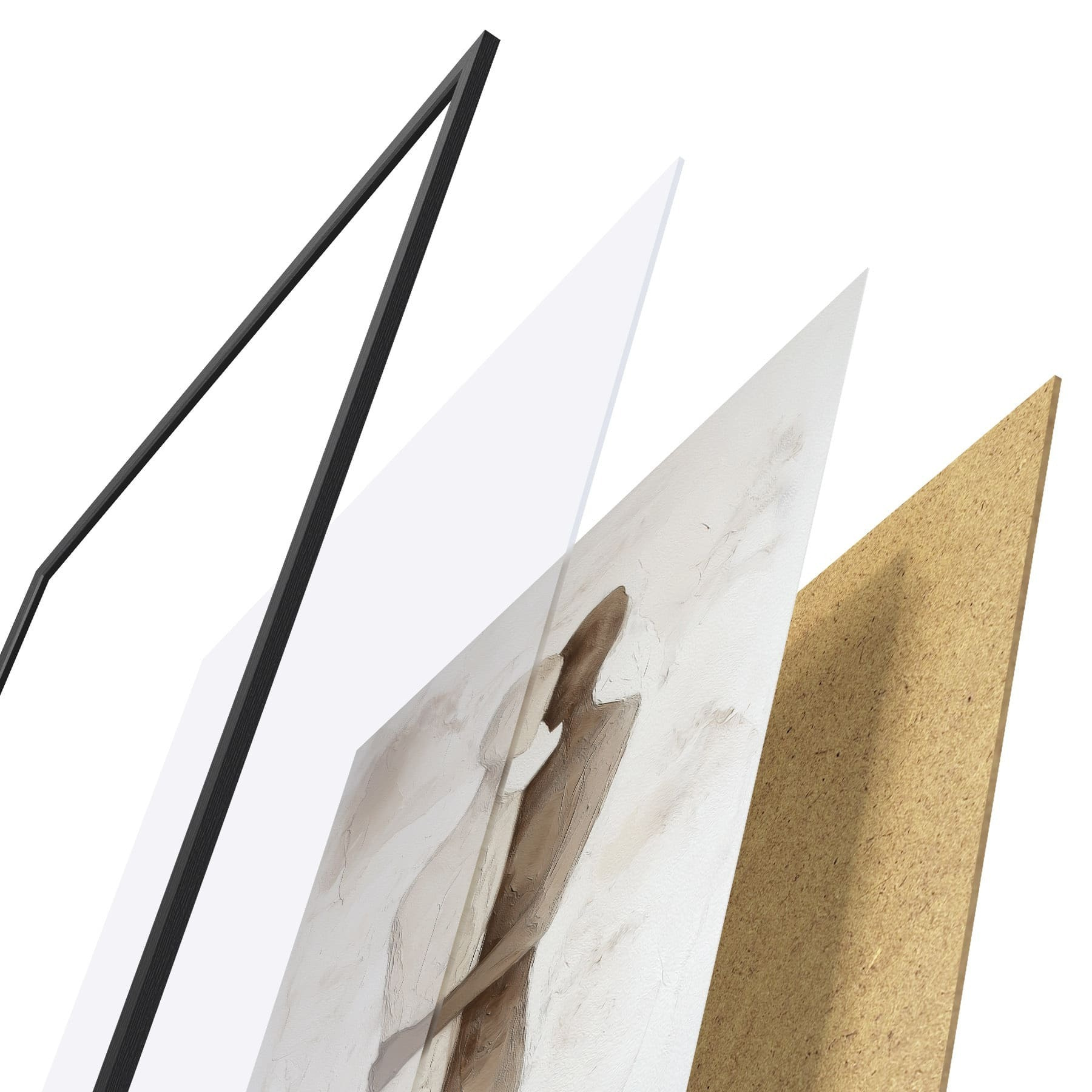 L’affiche encadrée est composée d’un cadre, d’un plexiglas, d’une image imprimée et d’un support en aggloméré. Elle est prête à être accrochée au mur grâce aux fixations situées à l’arrière.