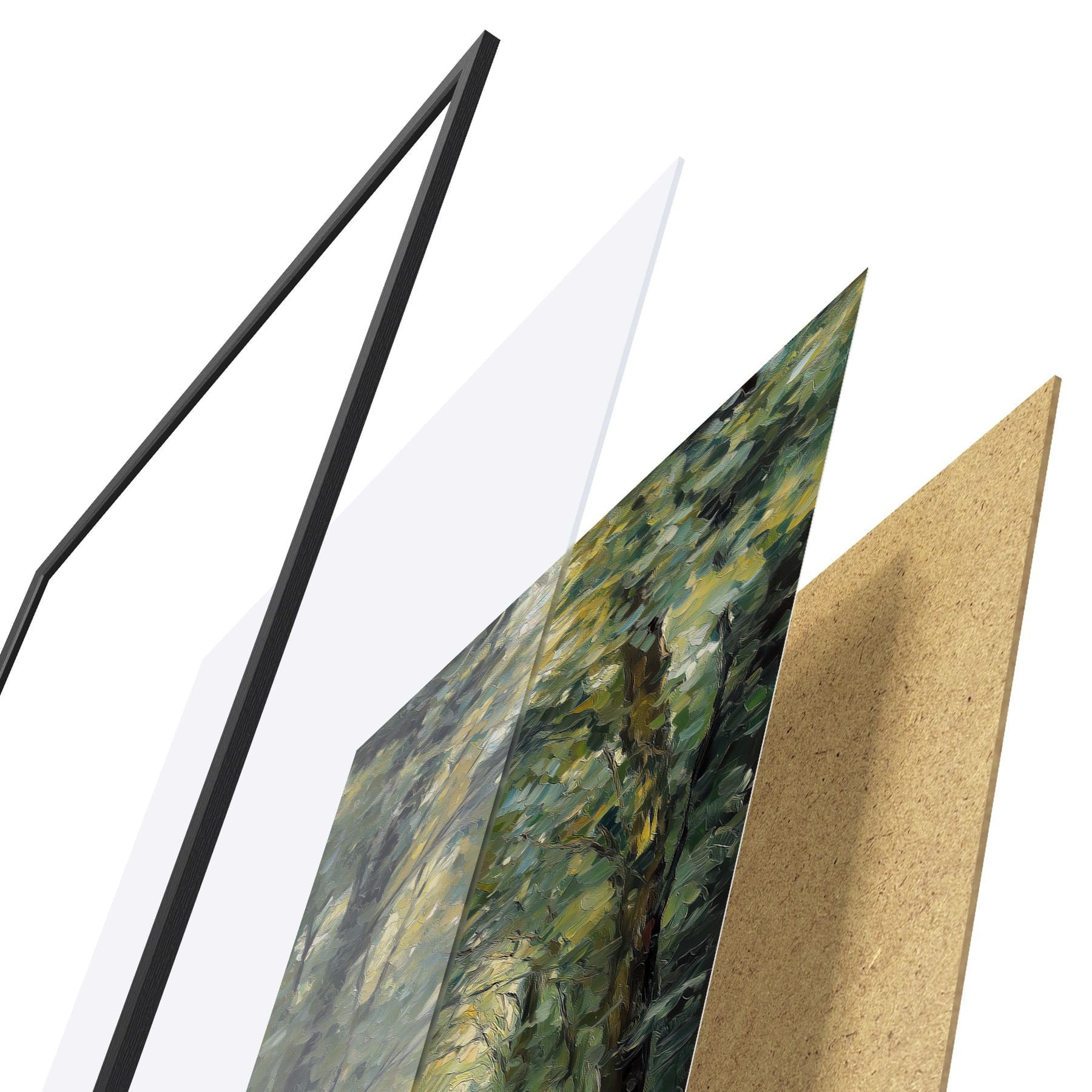 L’affiche encadrée est composée d’un cadre, d’un plexiglas, d’une image imprimée et d’un support en aggloméré. Elle est prête à être accrochée au mur grâce aux fixations situées à l’arrière.
