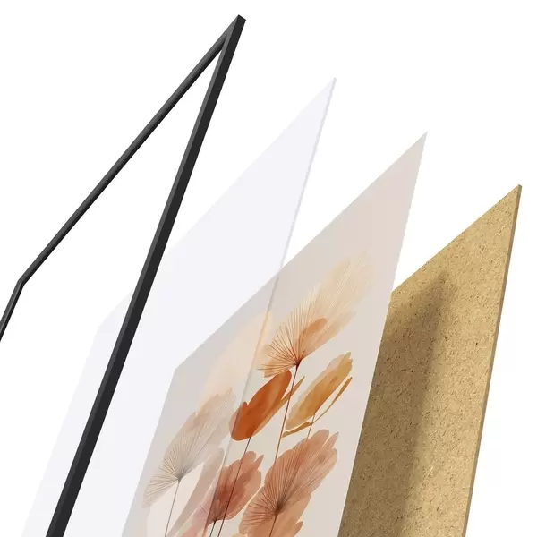 L’affiche encadrée est composée d’un cadre, d’un plexiglas, d’une image imprimée et d’un support en aggloméré. Elle est prête à être accrochée au mur grâce aux fixations situées à l’arrière.