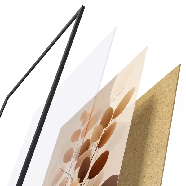 L’affiche encadrée est composée d’un cadre, d’un plexiglas, d’une image imprimée et d’un support en aggloméré. Elle est prête à être accrochée au mur grâce aux fixations situées à l’arrière.