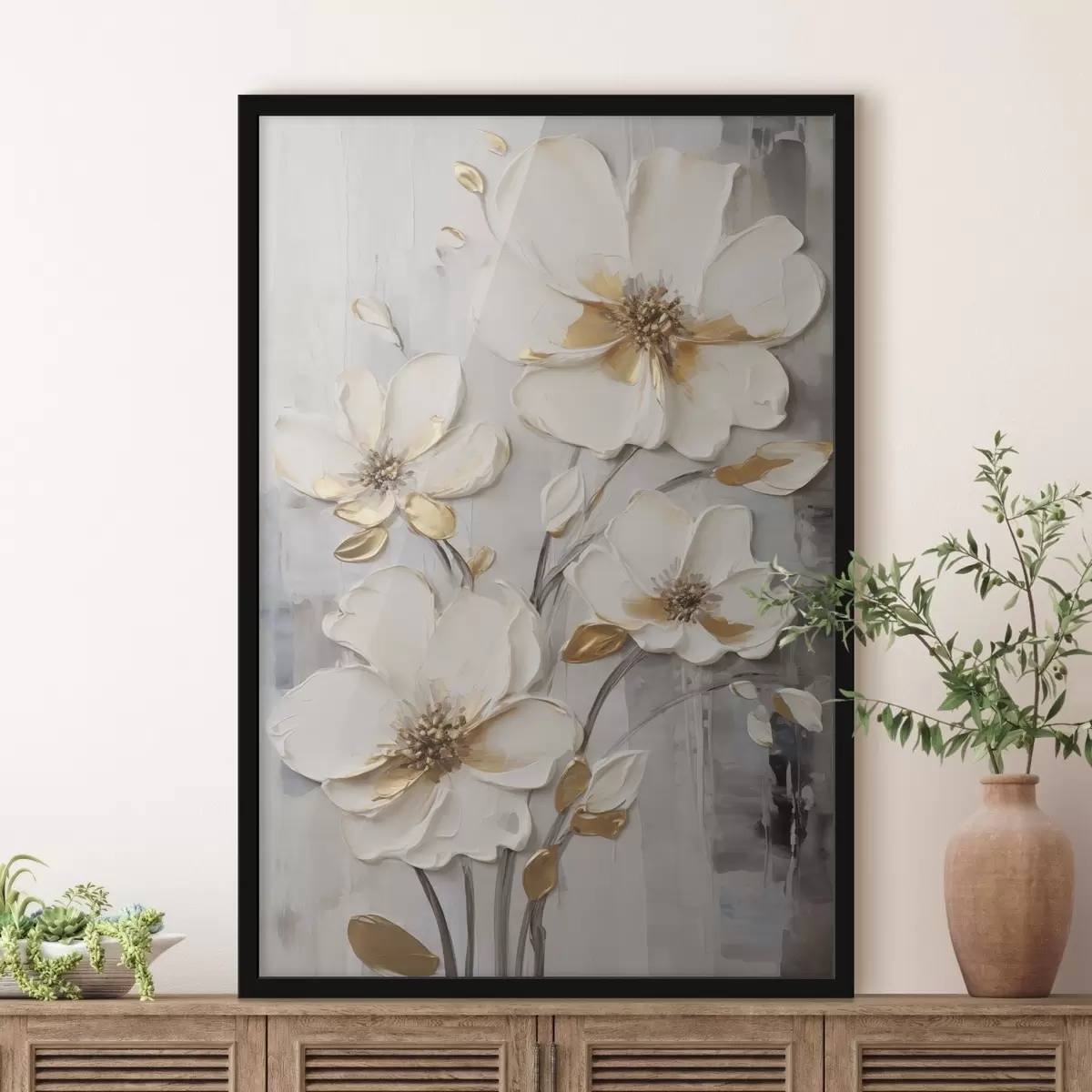 Poster Des fleurs blanches rehaussées de touches jaunes sur un fond texturé Nr f48721
