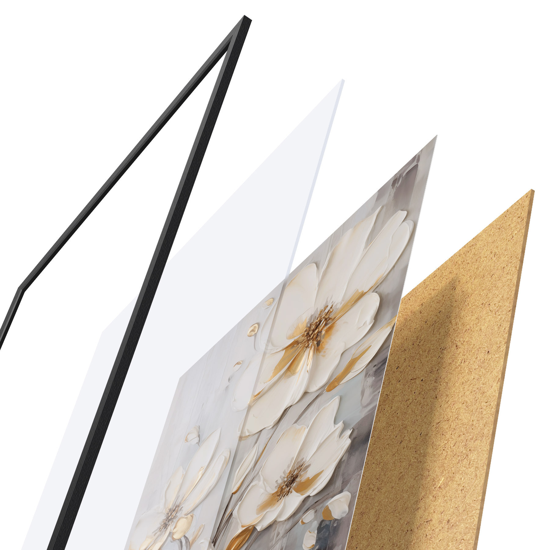 L’affiche encadrée est composée d’un cadre, d’un plexiglas, d’une image imprimée et d’un support en aggloméré. Elle est prête à être accrochée au mur grâce aux fixations situées à l’arrière.